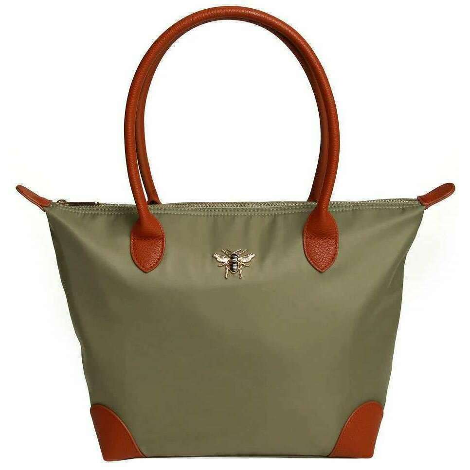 Using green 100% lightweight fabric, this shoreditch medium tote bag by Alice Wheeler London is perfect for women and a must have. It measures 25cm(height) x 34cm(width) x 14cm(depth). It is recommended to wipe clean with damp cloth to keep this bag in good condition. All the bags come complete with alice wheeler london packaging. The Alice Wheeler London Shoreditch Medium Tote Bag - Sage Green will make a classic everyday companion as it is lightweight and practical with gorgeous faux leather accents. Inside is a large main compartment where you can store the bulk of your belongings and it also has a large zipped internal pocket that is perfect for more valuable items as well as additional pockets for small bits and bobs. Finishing off this tote is the iconic Bumble Bee insignia and branding on the back.