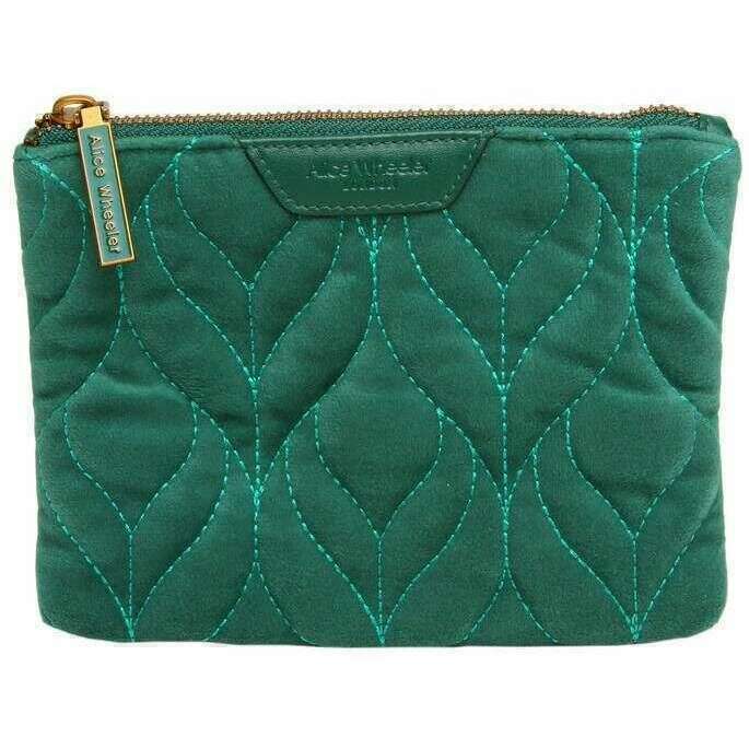 This women's velvet pouch by the brand Alice Wheeler London is made from 100% velvet and is showcased in green. It measures 13.5cm(height) x 15.5cm(width) x 2.5cm(depth). All the bags come complete with alice wheeler packaging. The Alice Wheeler London Velvet Pouch - Teal Green combines practicality and style, giving you an accessory that will keep you organised and looking good doing it. Unzip it to find a great sized interior that will carry your essentials for whatever it is you need on a day-to-day basis when running errands. Perfect for travelling with or just to store your items at home. Finished with debossed branding and gorgeous design stitching completes this piece.