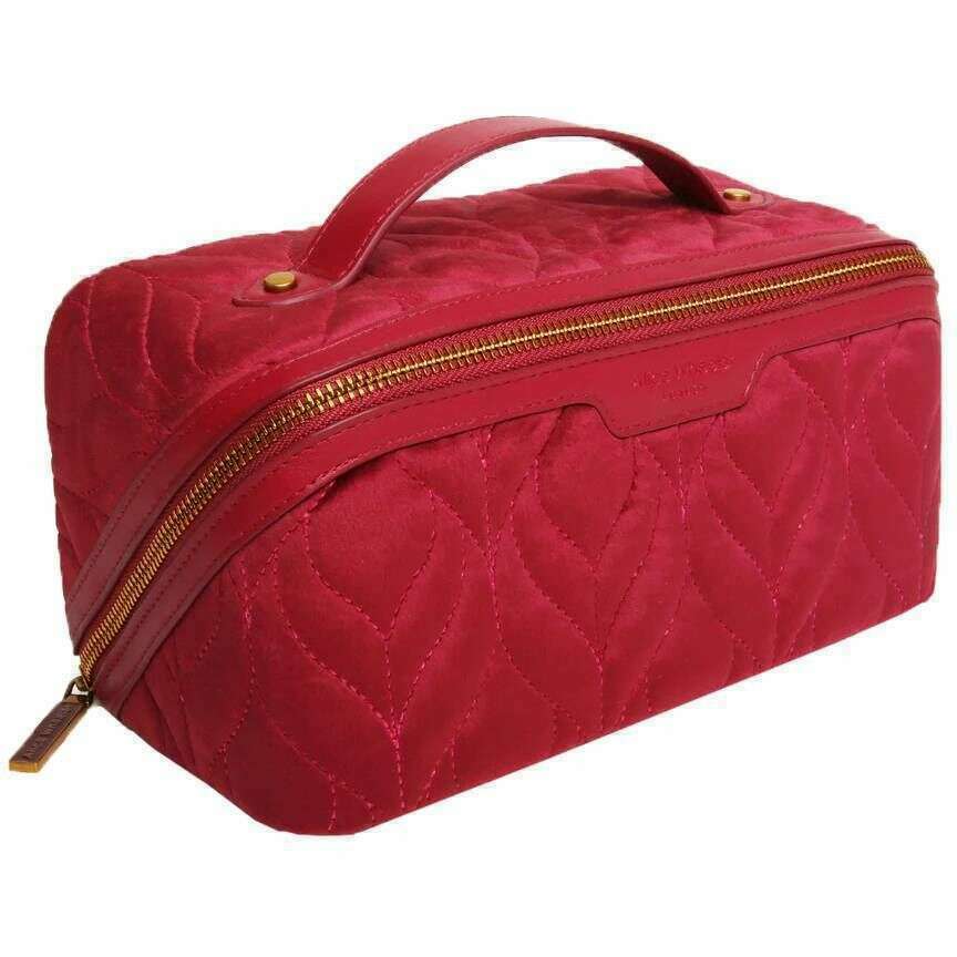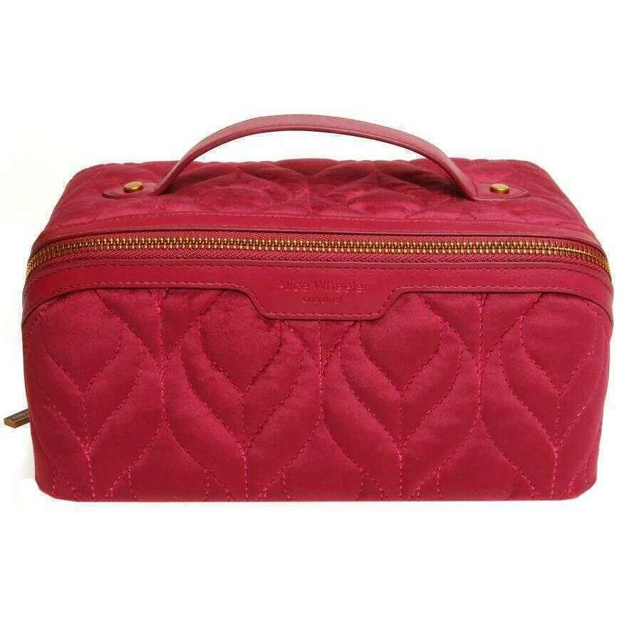 Designer Alice Wheeler London has brought you this women's 100% velvet bag using fig red tones. It measures 12cm(height) x 24cm(width) x 12cm(depth). All the bags come complete with alice wheeler packaging. The Alice Wheeler London Velvet Train Case - Fig Red will make a practically stylish travel companion, giving you an accessory that will organise your essentials and look good doing it. Unzip it to find a dual compartment with internal pockets and a zipped pocket in the middle for smaller items which you don’t want to roam loose. It has a top carry handle and is finished with debossed branding and gorgeous design stitching.