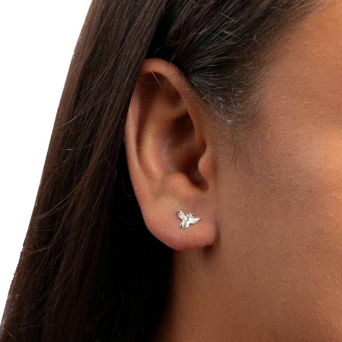 Brought to you by the brand Beginnings, these silver women's bee stud earrrings are made from 100% recycled sterling silver with rhodium metal plating. It measures 0.6cm(height) x 1cm(width) x 0.2cm(depth). All the earrings come complete with beginnings presentation box. The Beginnings Bee Stud Earrrings - Silver has a beautiful girly touch bringing a glimpse of nature to your look, perfect for everyday wear. The stud earrings design are great for adding a classic and timeless look. Crafted from hypo-allergenic skin safe recycled sterling silver giving a stunning shine and a high-quality luxurious feel.