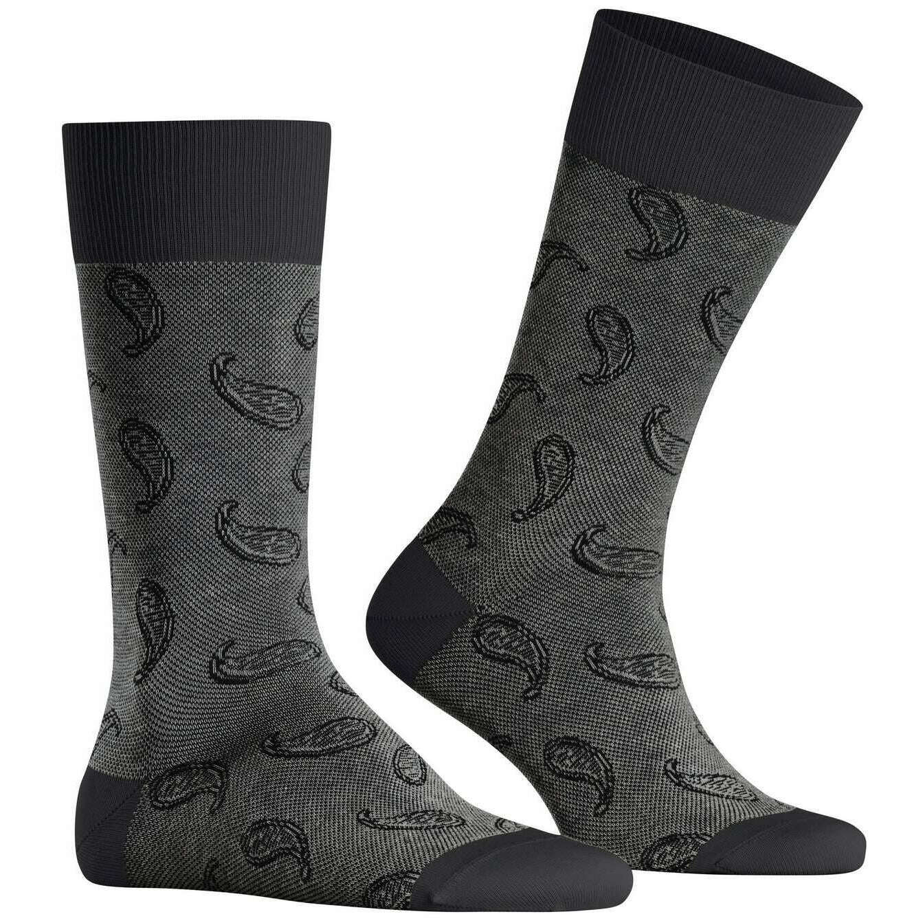 These paisley socks for men are fashioned by the brand Burlington in a black colour and are made from 78% organic cotton, 21% polyamide and 1% elastane. Also the black socks are designed in a paisley pattern, It is recommended to wash at 40 degrees to keep these socks in good condition. All the socks come complete with burlington sock tags. The Burlington Paisley Socks - Black are more than just a fashion accessory, they're a statement of style, fun, and superior craftsmanship. Crafted from a blend of combed cotton, polyester, and elastane, these socks provide a breathable, comfortable fit with a hint of stretch. The high-quality materials ensure durability while maintaining a cozy, skin-friendly texture. The knitted-in Burlington logo and trendy paisley pattern adds a playful touch to any outfit and is for those seeking a fun twist in their everyday attire.