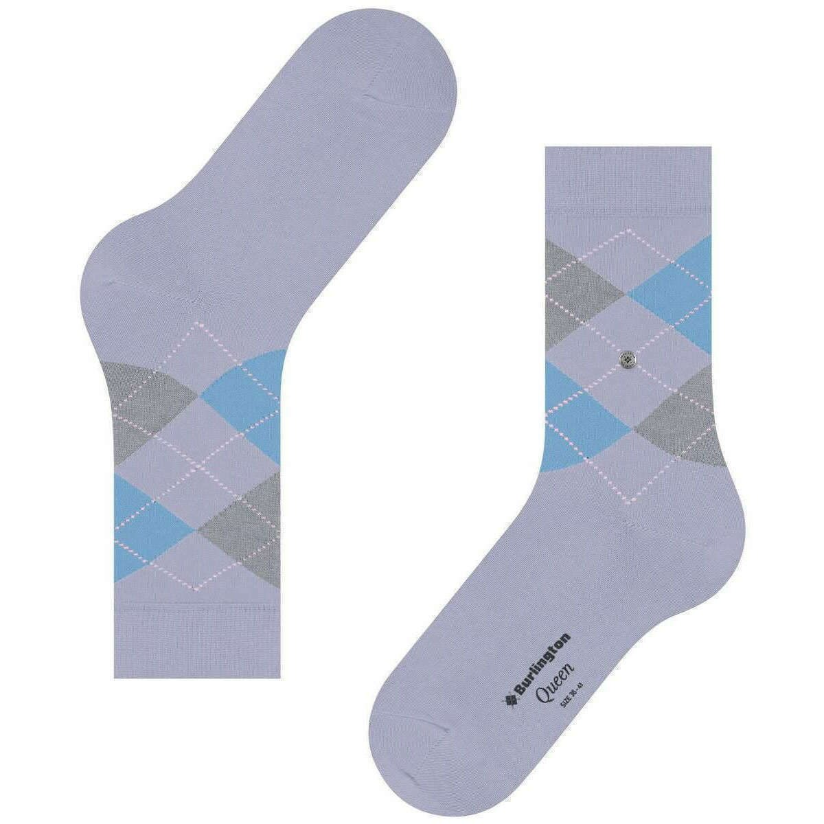 These women's queen socks by the brand Burlington are made from 67% organic cotton and 33% polyamide (20% recycled) and are showcased in purple. Also the purple/blue/grey socks are designed in a argyle pattern, It is recommended to machine wash at 40 degrees and do not tumble dry to keep these socks in good condition. All the socks come complete with burlington sock tags. The Burlington Queen Socks - Purple/Blue/Grey are the perfect combed cotton socks for all purposes. These socks stretch and conform to the feet for a relaxed fit. The stunning colourway and the classic Burlington clip on the ankle makes these socks great for styling in any season. Designed to provide a natural comfortable wear and being crafted from sustainable yarns, your feet will be happy in Queens.