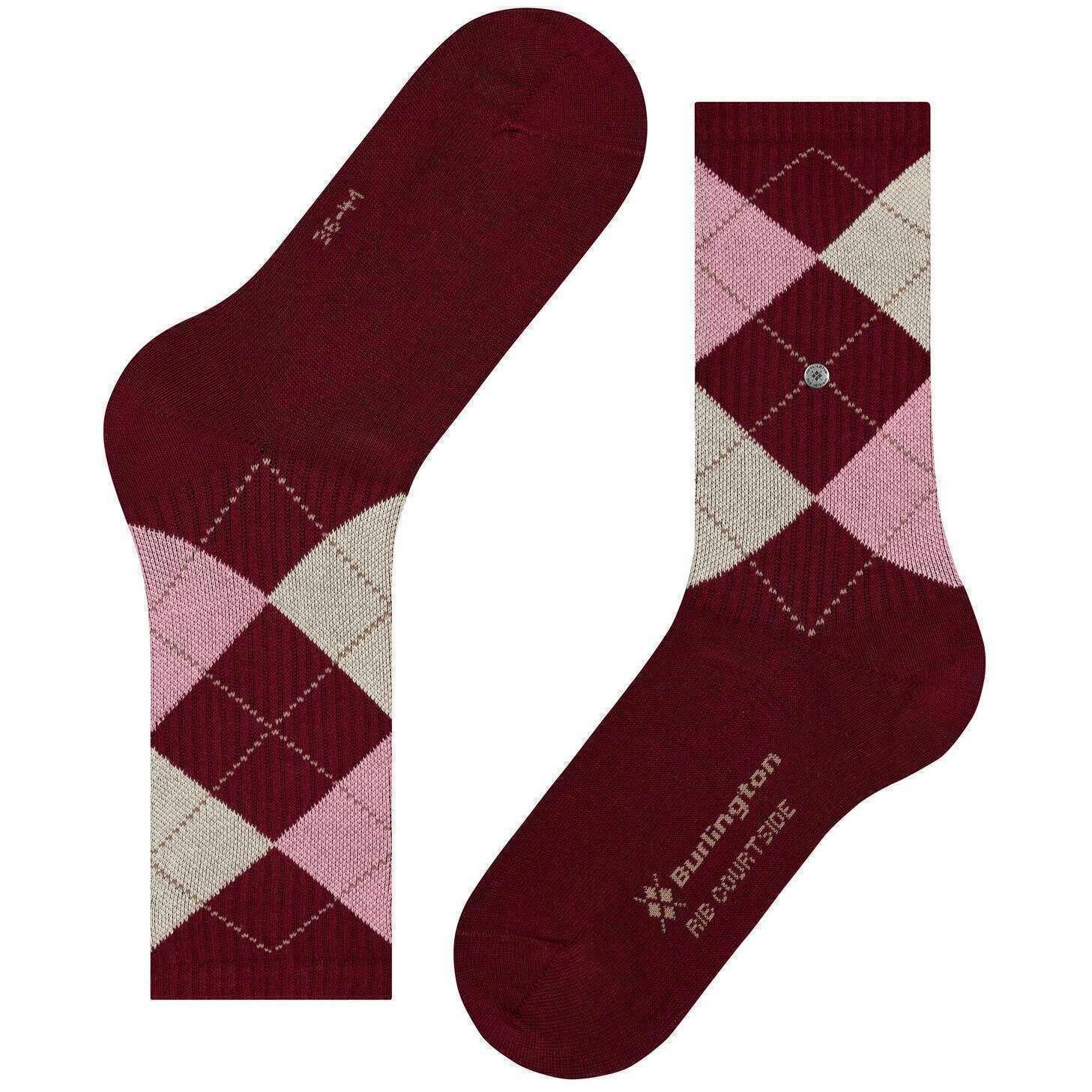 Brought to you by the brand Burlington, these wine red women's rib courtside socks are made from 80% cotton, 17% polyamide and 3% elastane. Also the wine red socks are designed in a argyle pattern, It is recommended to machine wash at 40 degrees to keep these socks in good condition. All the socks come complete with burlington sock tags. The Burlington Rib Courtside Socks - Wine Red elevate your typical tennis socks with the classy and trendy Argyle design and ribbed structure. Crafted from high-quality materials and a high organic cotton content ensures these socks are durable, sustainable and skin-friendly. The soft materials give a pleasant wear great for all day every day. This pair is adorned with the iconic Burlington clip for a completed signature look.