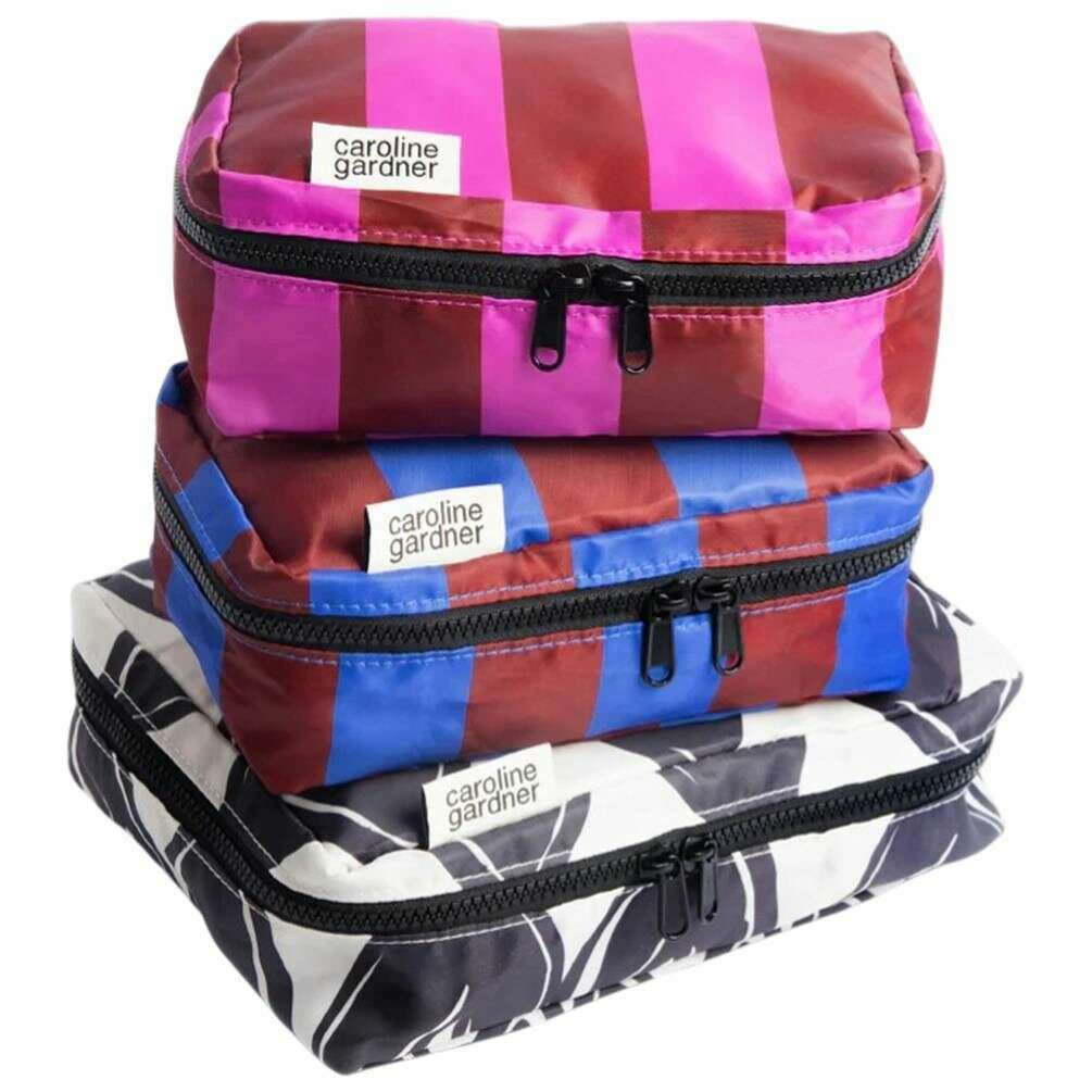 Introducing this women's mono linked hearts and stripe set of 3 small packing cubes by Caroline Gardner, it is manufactured from 100% polyester in a black/blue/pink colour. All the bags come complete with caroline gardner tags. The Caroline Gardner Mono Linked Hearts and Stripe Set of 3 Small Packing Cubes - Black/Blue/Pink allows every traveller to stay organised in style. Designed in the brand s new mono linked hearts and stripe prints, each cube adds a playful yet practical touch to any suitcase.