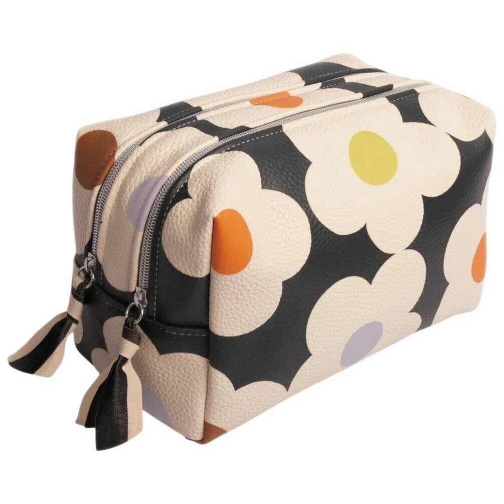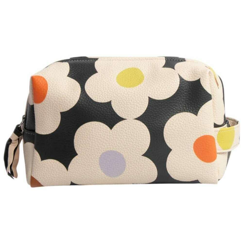 Caroline Gardner Multi Flower Large Travel Wash Bag - Black/Cream
