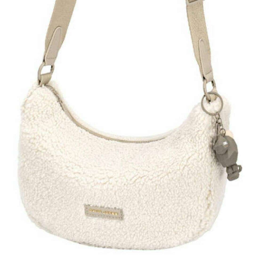 Perfect for women is this David Jones beige faux fur sling bag, it is also made from 95% polyester and 5% polyurethane. It measures 17cm(height) x 22cm(width) x 10cm(depth). All the bags come complete with david jones packaging. The David Jones Faux Fur Sling Bag - Beige is a stylish and versatile accessory designed to add functionality and style to your wardrobe. This bag with a zippered closure also features interior pockets to keep your belongings safe and accessible. Its chic and modern faux fur effect design, exuding contemporary elegance with an adjustable strap which allows you to customise the fit to your preference. You can wear it comfortably over the shoulder or across the body for hands-free convenience. Complete with a cute charm and David Jones branding.