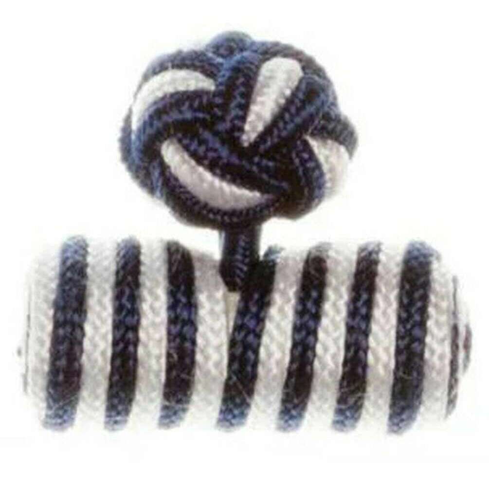 Brought to you by the brand David Van Hagen, these blue/white men's barrel cuff knots are made from silk. All the cufflinks come complete with david van hagen packaging. The David Van Hagen Barrel Cuff Knots - Blue/White are an unusual alternative to the usual cufflink, these cuff knots feature a navy blue and white barrel design, which makes them extra special, especially as a gift for a gentleman who enjoys formal but unique wear.