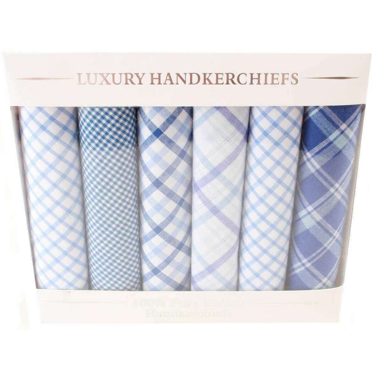 Designer David Van Hagen has brought you this men's 100% pure cotton handkerchief using blue tones. It measures 40cm(height) x 40cm(width). Also the blue handkerchief is designed in a checked pattern, It is recommended to machine wash at 40 degrees and do not tumble dry or dry clean to keep this handkerchief in good condition. 6 pack handkerchiefs are value for money ensuring they are a good buy, All the handkerchiefs come complete in a presentation box. The David Van Hagen Checked 6 Pack Handkerchief - Blue are an essential for any gent’s collection. Not only do these complete your look but also have great functionality as you never know when you may need one. The gorgeous blue check design will pair perfectly with formal attire whatever the occasion. They have been crafted from high quality pure cotton that is durable and highly absorbent and a luxurious and soft feel.