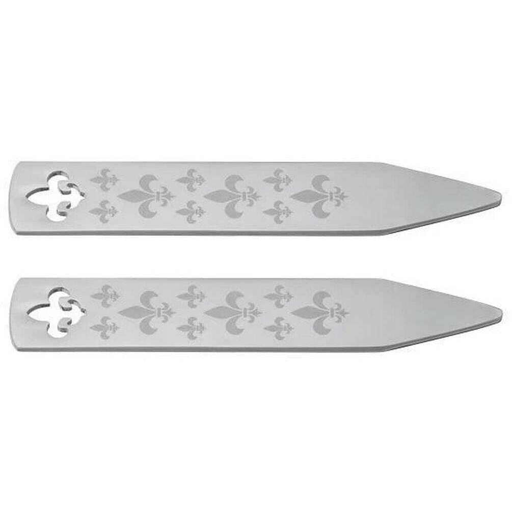 Using silver base metal, these fleur de lys collar stay by David Van Hagen are perfect for men and a must have. All the collar stiffeners come complete with david van hagen packaging. The David Van Hagen Fleur De Lys Collar Stay - Silver feature a classic silver Fleur de Lys design, making the ideal gift for any modern man who has class in mind.