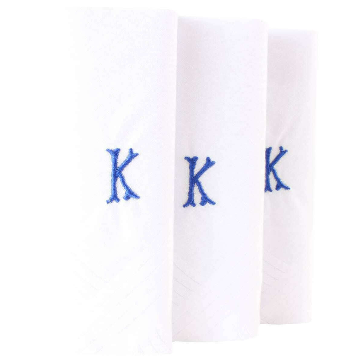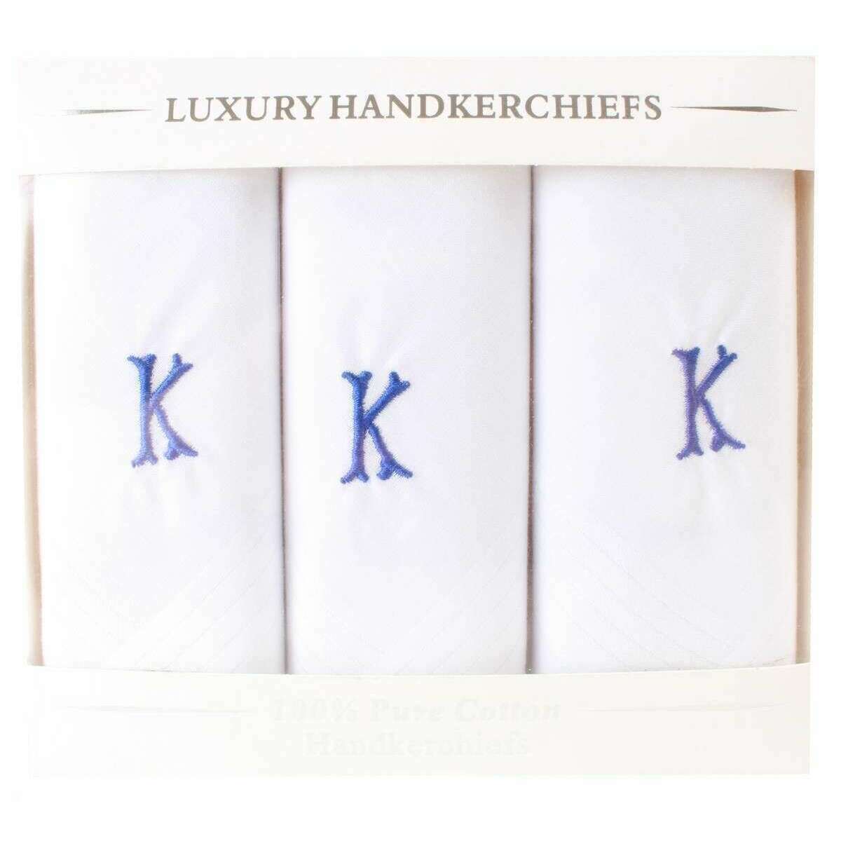 David Van Hagen K Initial 3 Pack Handkerchief - White/Blue