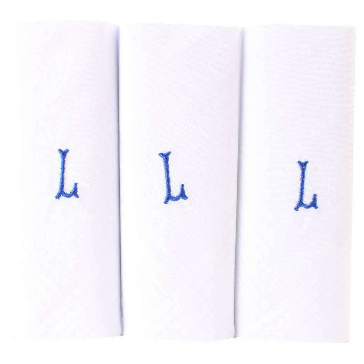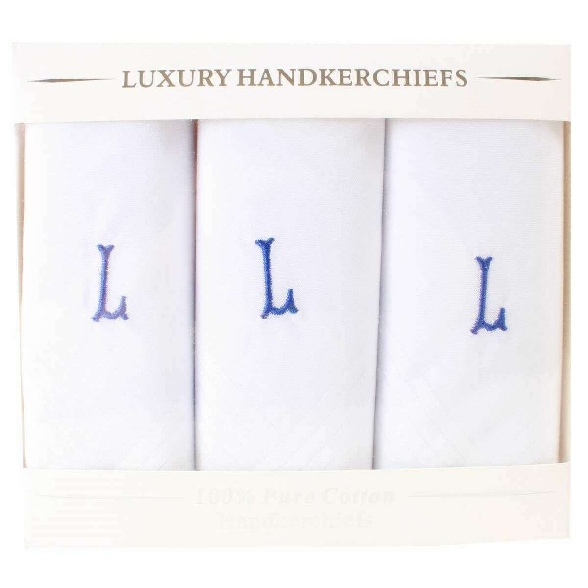David Van Hagen L Initial 3 Pack Handkerchief - White/Blue