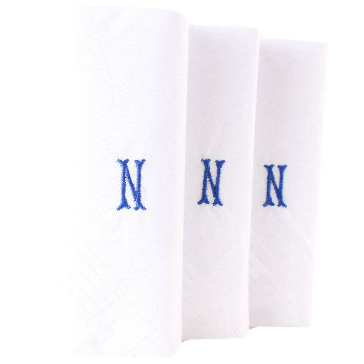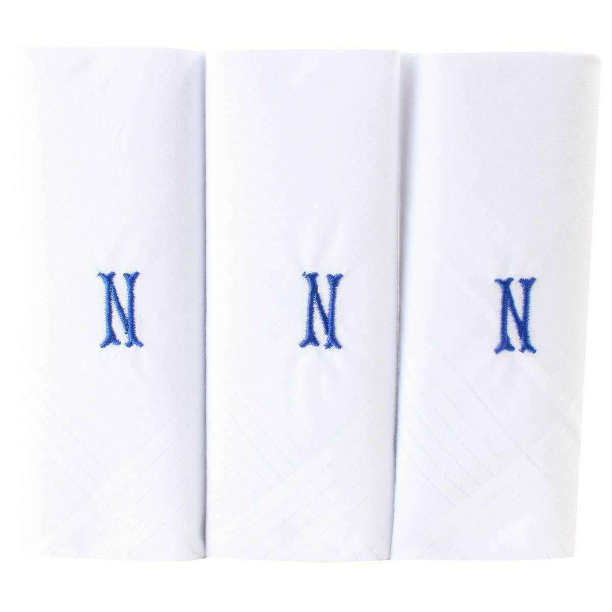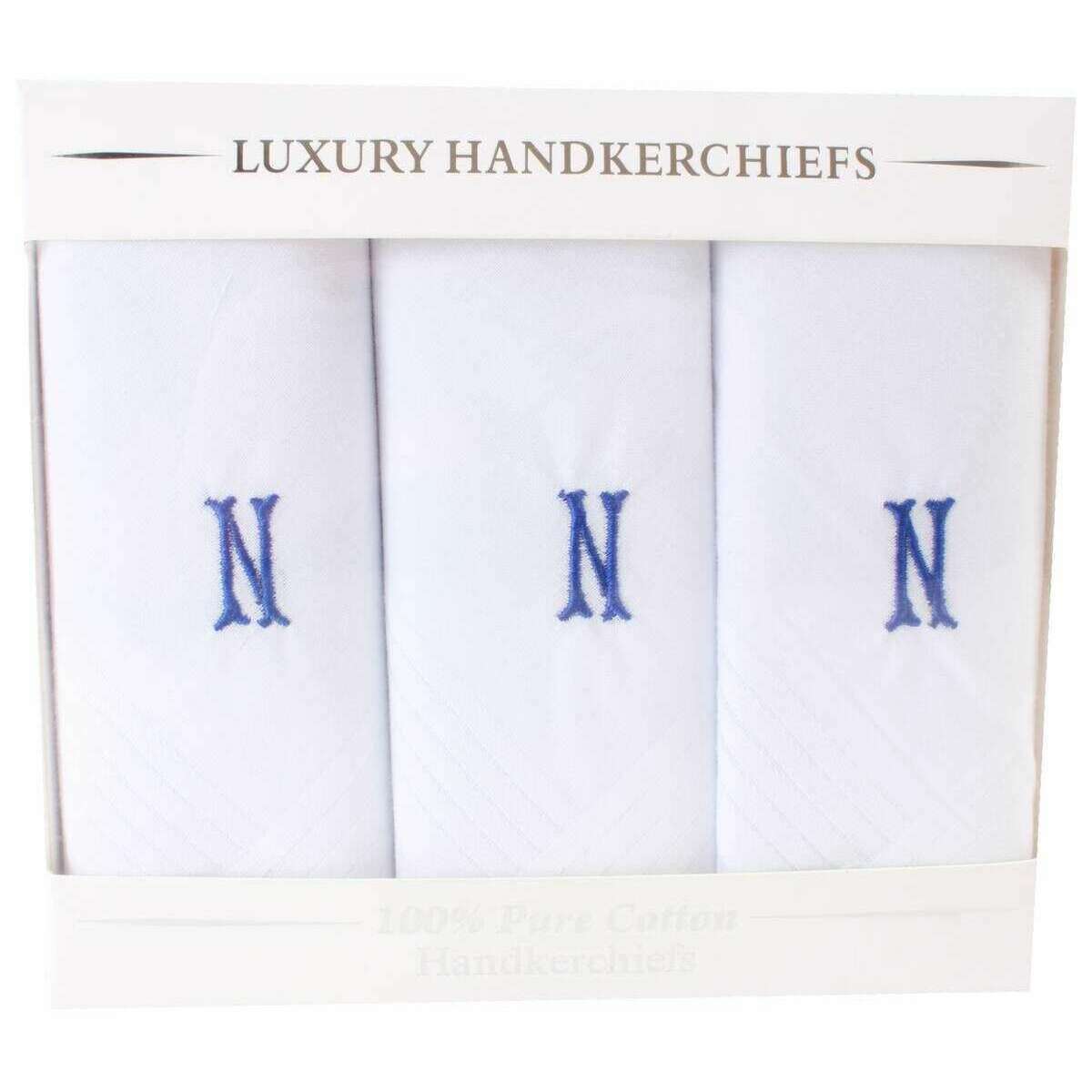 David Van Hagen N Initial 3 Pack Handkerchief - White/Blue