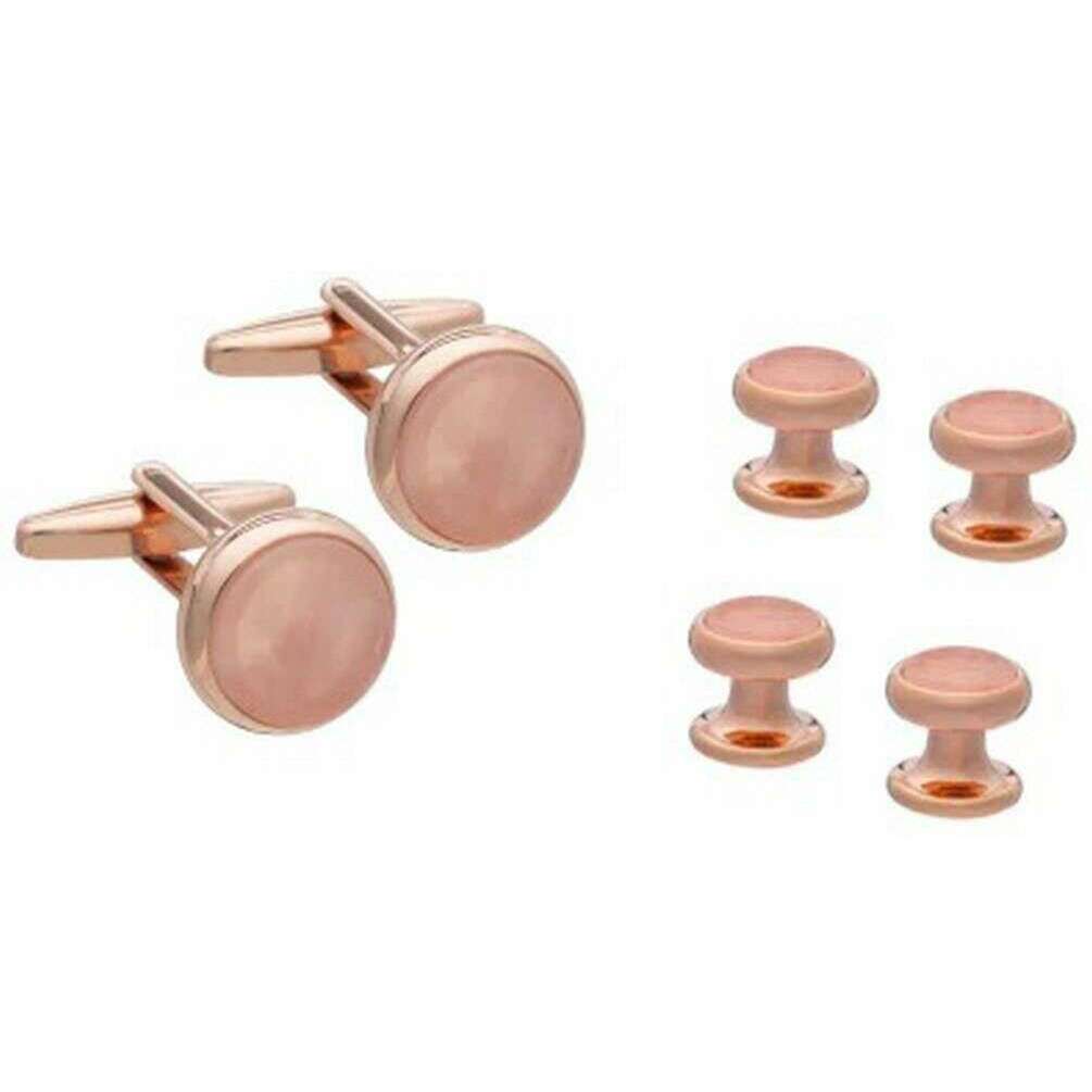 David Van Hagen Rose Quartz Dress Stud and Cufflink Set - Pink/Rose Gold