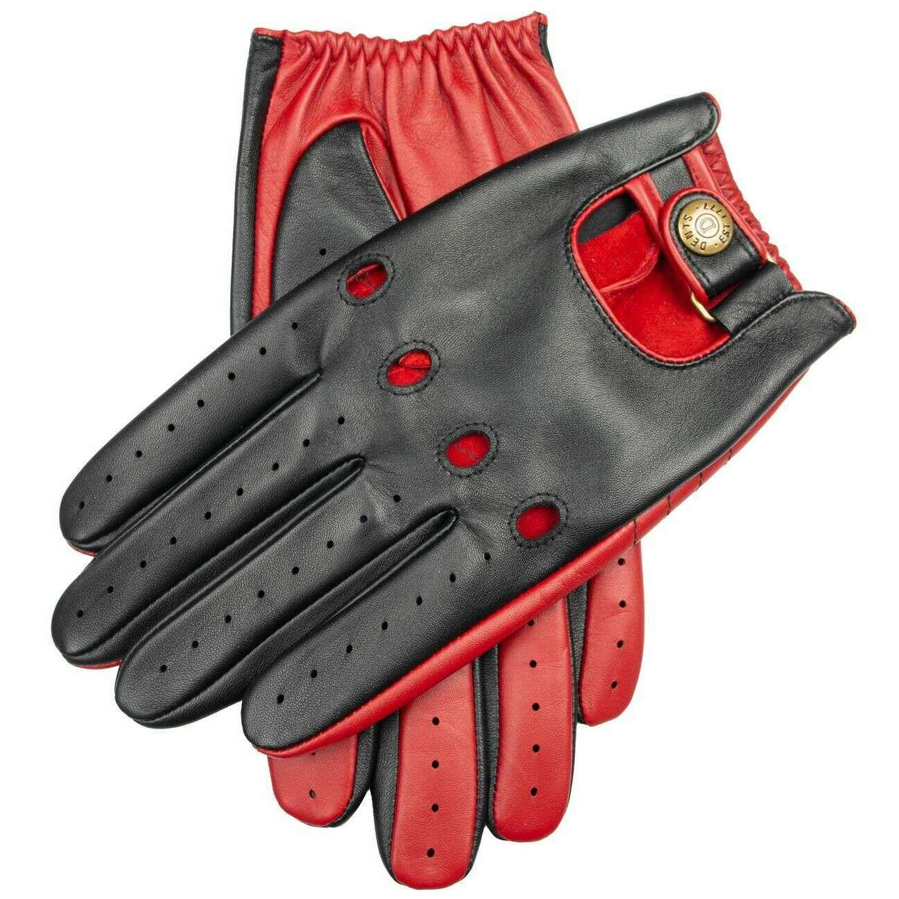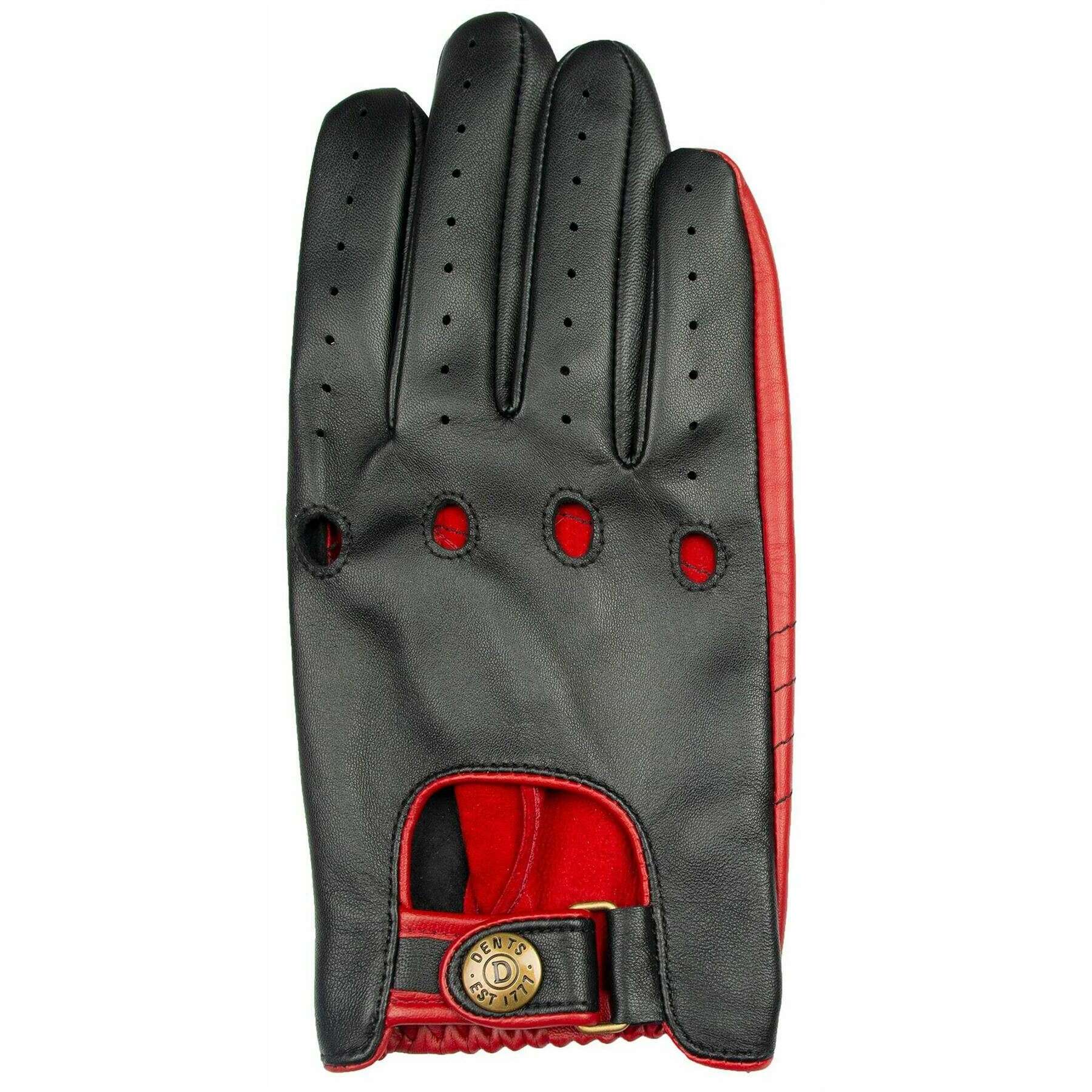 Dents Aintree Two-Colour Leather Driving Gloves - Black/Berry Red