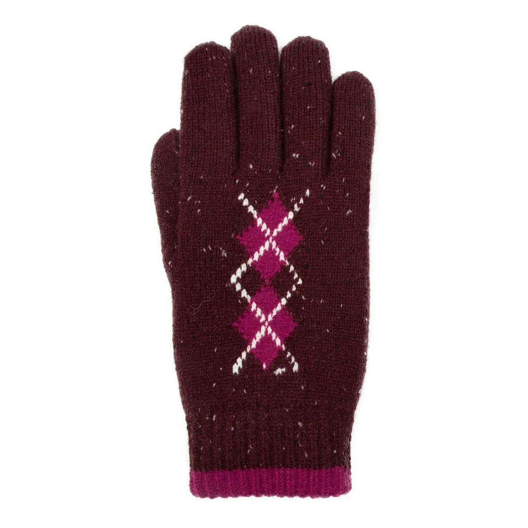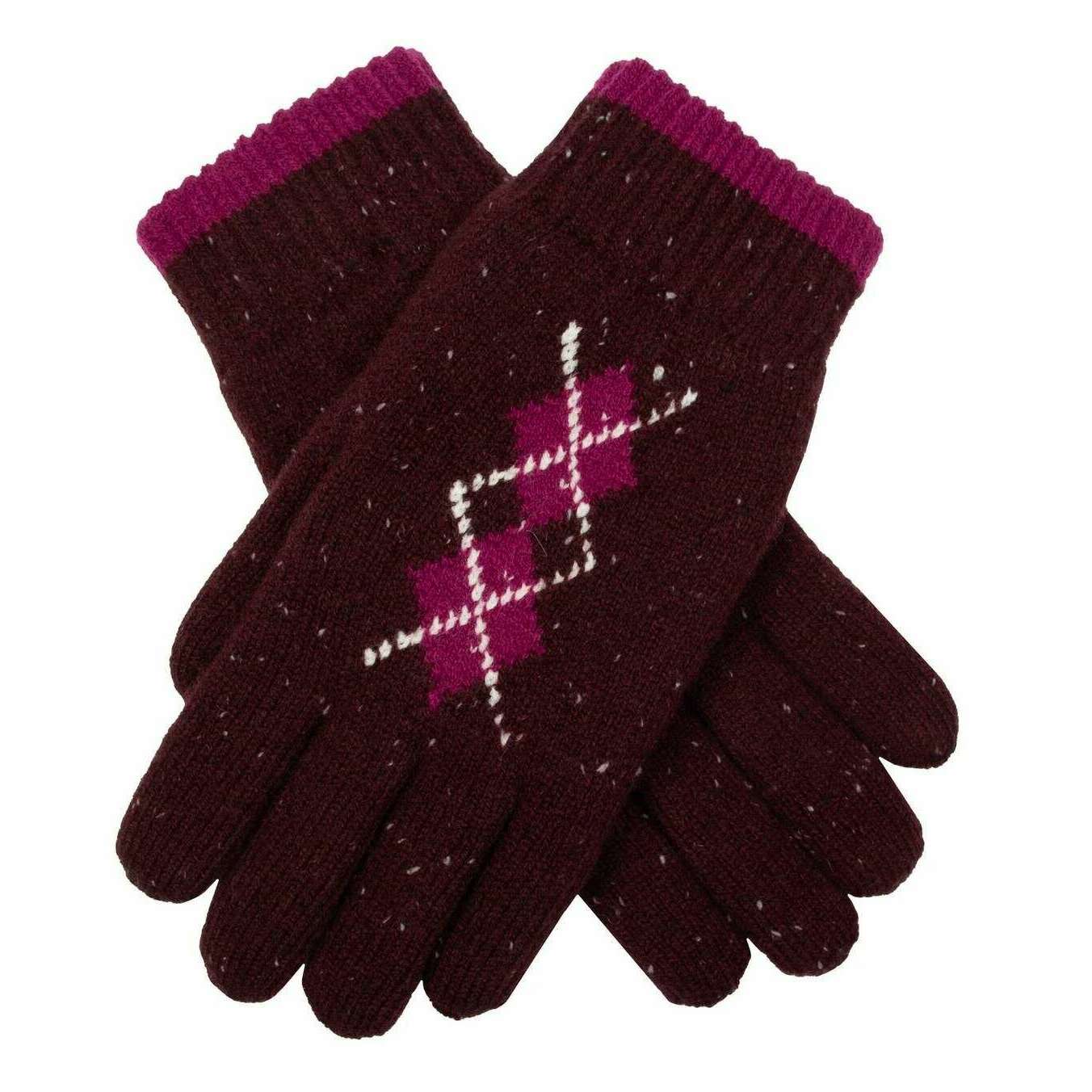 Dents Argyle Marl Yarn Knitted Gloves - Damson Burgundy/Cassis Pink