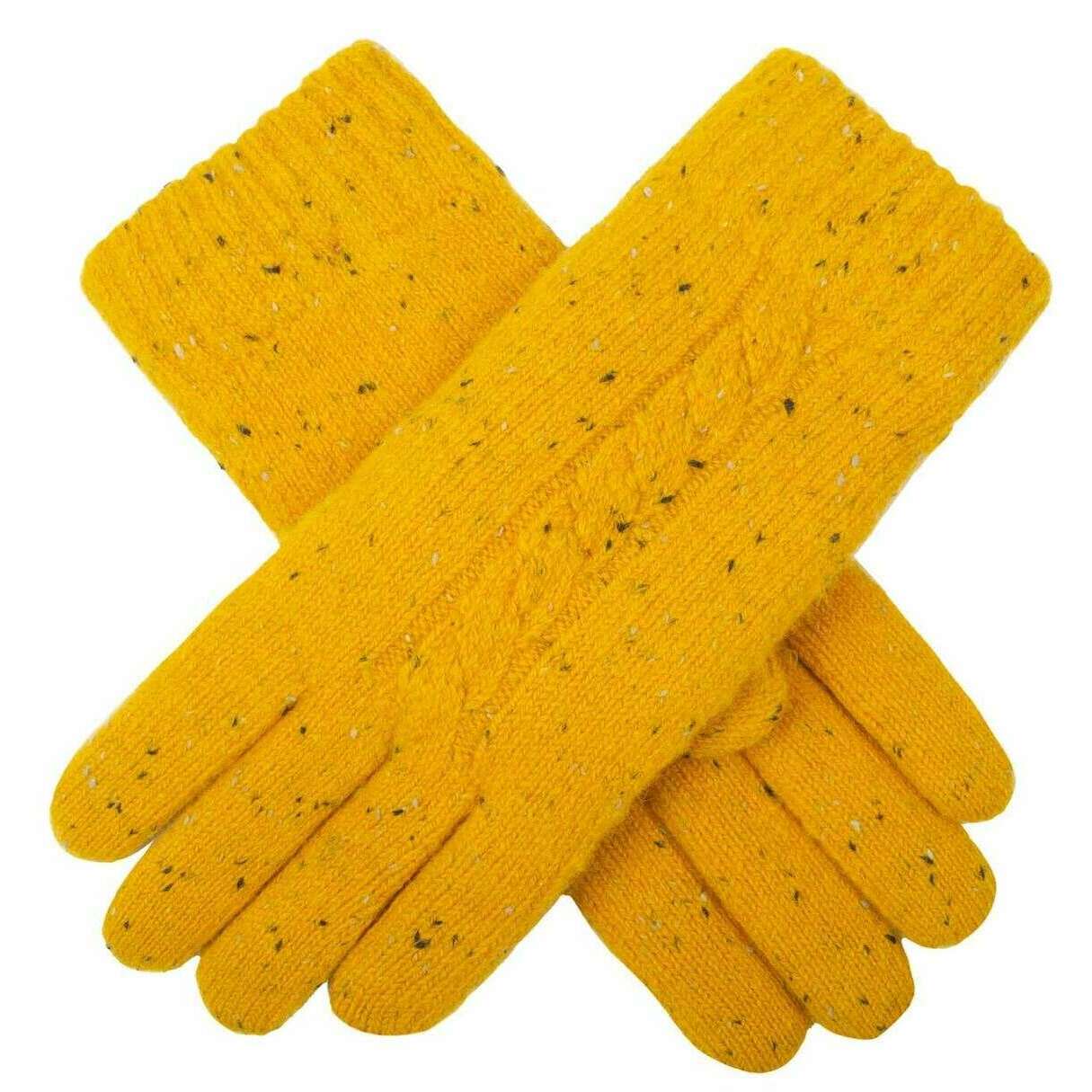 Dents Cable Knit Marl Yarn Gloves - Ochre Yellow