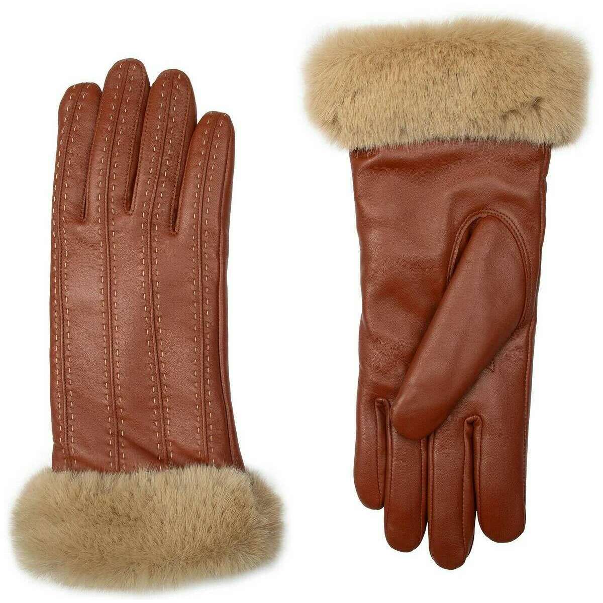 Introducing these women's cassie contrast stitching leather gloves by Dents, they are manufactured from 100% hairsheep leather and polyester faux fur lining in a cognac tan/natural beige colour. Also the cognac tan/natural beige gloves are designed in a plain pattern, All the gloves come complete with dents tags. The Dents Cassie Contrast Stitching Leather Gloves - Cognac Tan/Natural Beige are a glamorous choice that will have you looking chic and stylish on your winter outings. The faux fur cuffs give you the luxurious look without the conscious of any animals being used. They are lined with more faux fur, giving your hands a stunning soft and cosy shield against the winter elements. This pair is completed with a decorative vertical stitch design giving a timeless sophisticated appeal.
