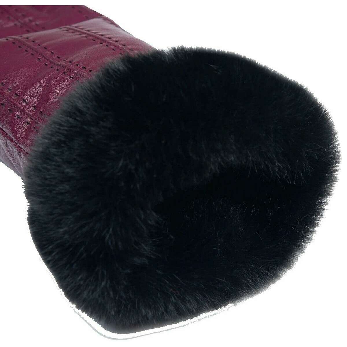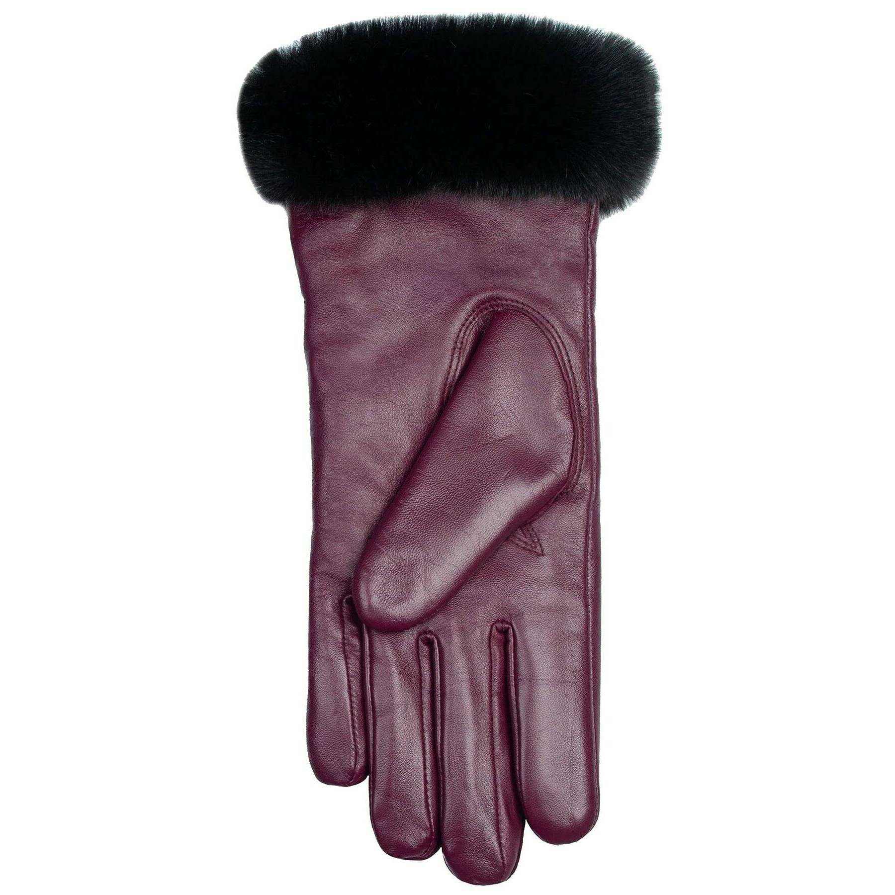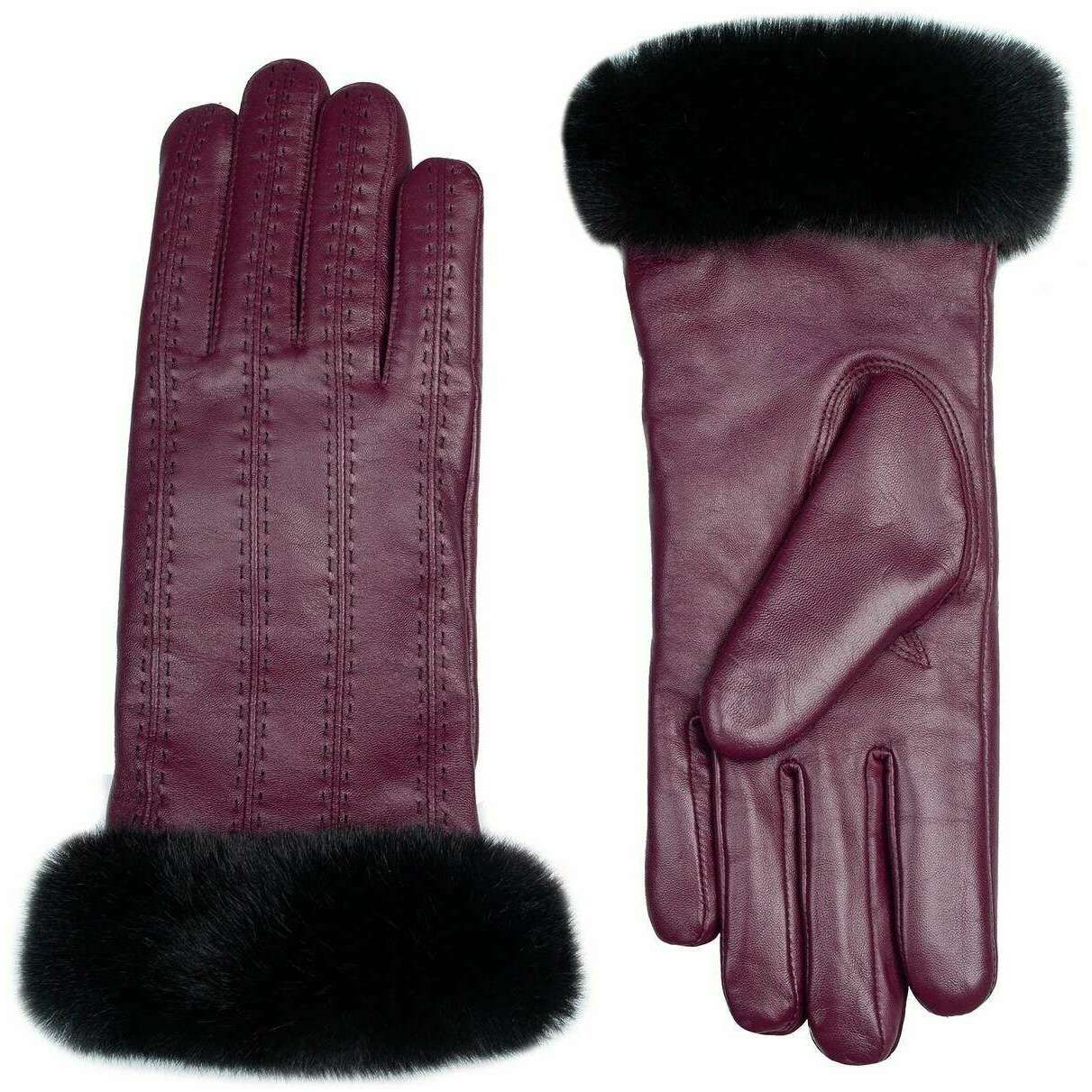 These women's cassie contrast stitching leather gloves have been made from 100% hairsheep leather and polyester faux fur lining, featured in a burgundy colour and are from the brand Dents. Also the damson burgundy/black gloves are designed in a plain pattern, All the gloves come complete with dents tags. The Dents Cassie Contrast Stitching Leather Gloves - Damson Burgundy/Black are a glamorous choice that will have you looking chic and stylish on your winter outings. The faux fur cuffs give you the luxurious look without the conscious of any animals being used. They are lined with more faux fur, giving your hands a stunning soft and cosy shield against the winter elements. This pair is completed with a decorative vertical stitch design giving a timeless sophisticated appeal.