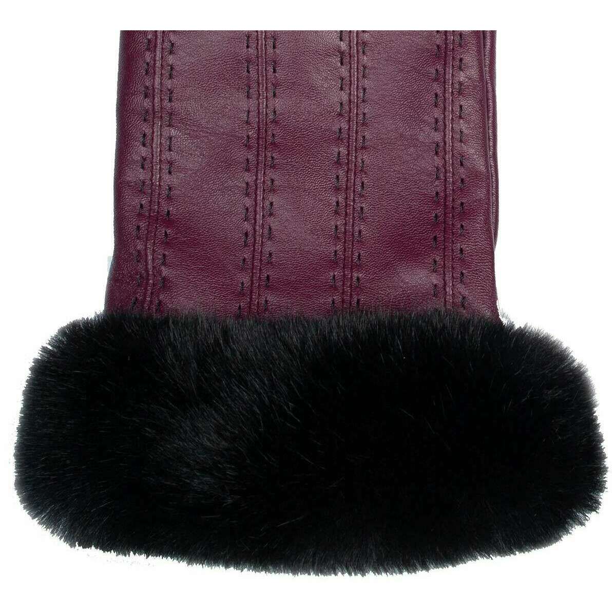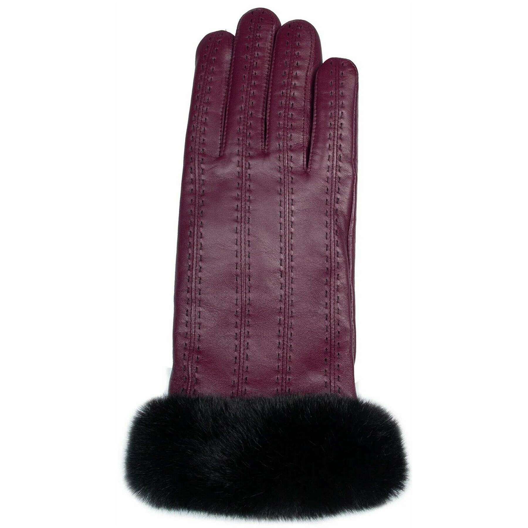 Dents Cassie Contrast Stitching Leather Gloves - Damson Burgundy/Black