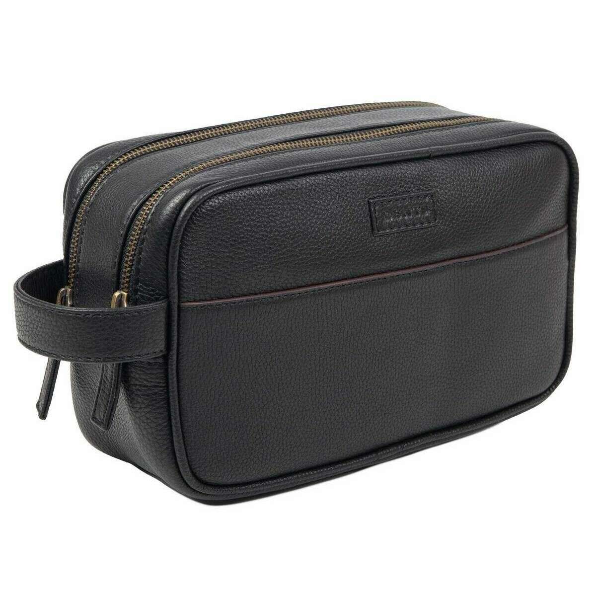 Manufactured from 100% pebble grain leather is this black/bordeaux burgundy men's cherwell wash bag by the designer Dents. It measures 25cm(height) x 15cm(width) x 10cm(depth). All the bags come complete with dents tags. The Dents Cherwell Wash Bag - Black/Bordeaux Burgundy will be perfect for everyday use and a handy companion on your travels. It has two large separate zipped compartments as well as interior slip pockets. This bag is made easy to carry with a leather side handle and is also waterproof. The outside of the bag has the embossed Dents logo for a sophisticated look.