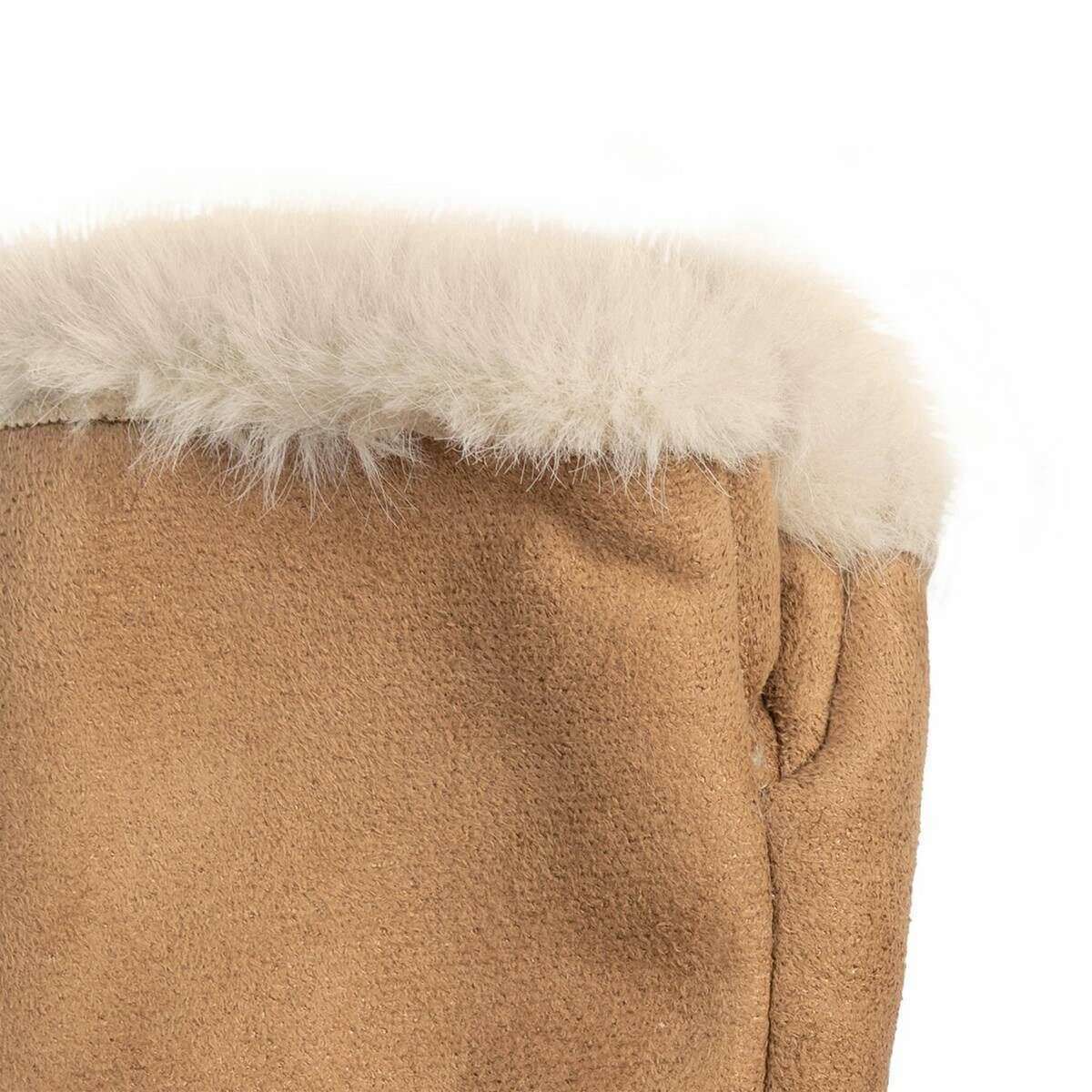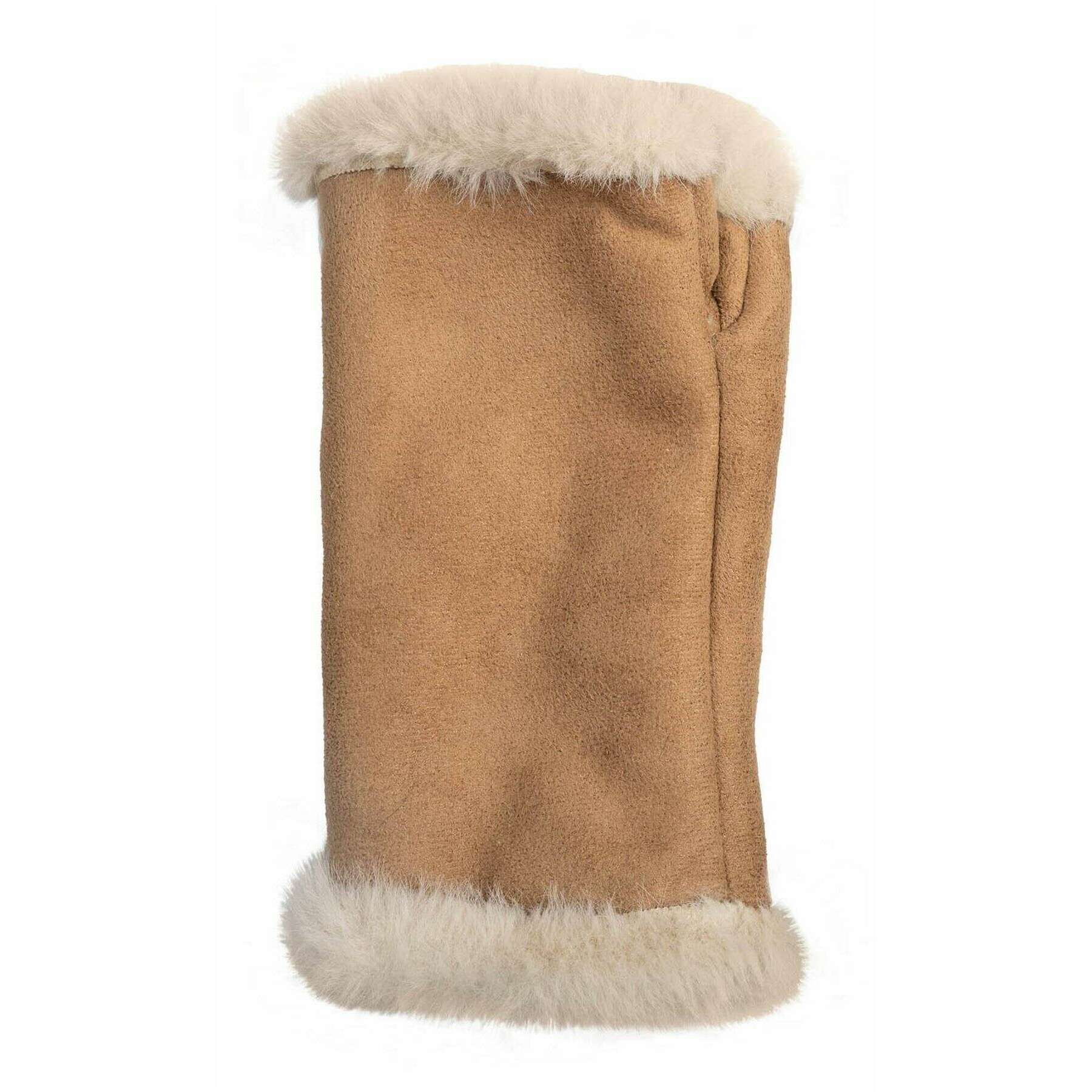 Dents Fingerless Faux Suede Mittens - Natural Beige/Camel Beige