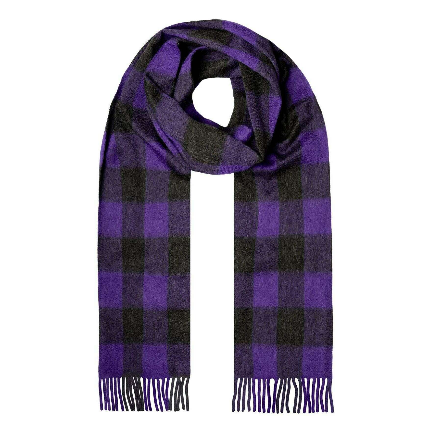 Dents Heritage Plaid Check Cashmere Scarf - Amethyst Purple/Black