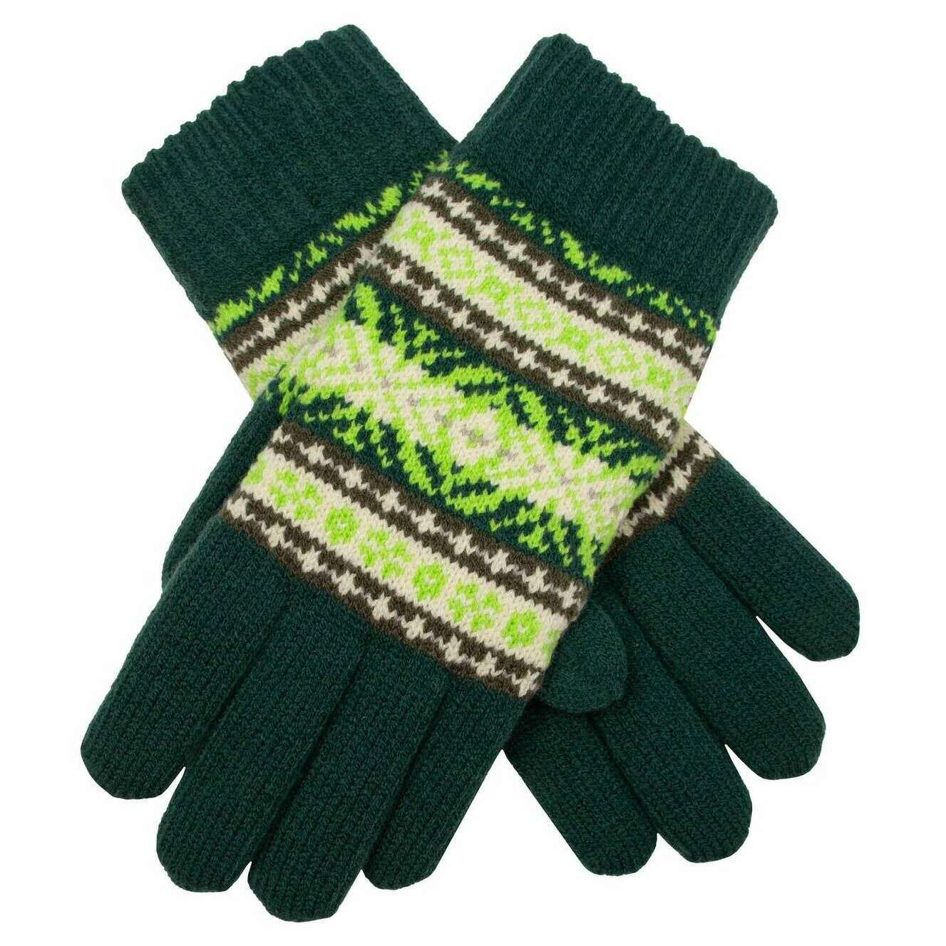 Dents Jacquard Fair Isle Knitted Gloves - Olive Green