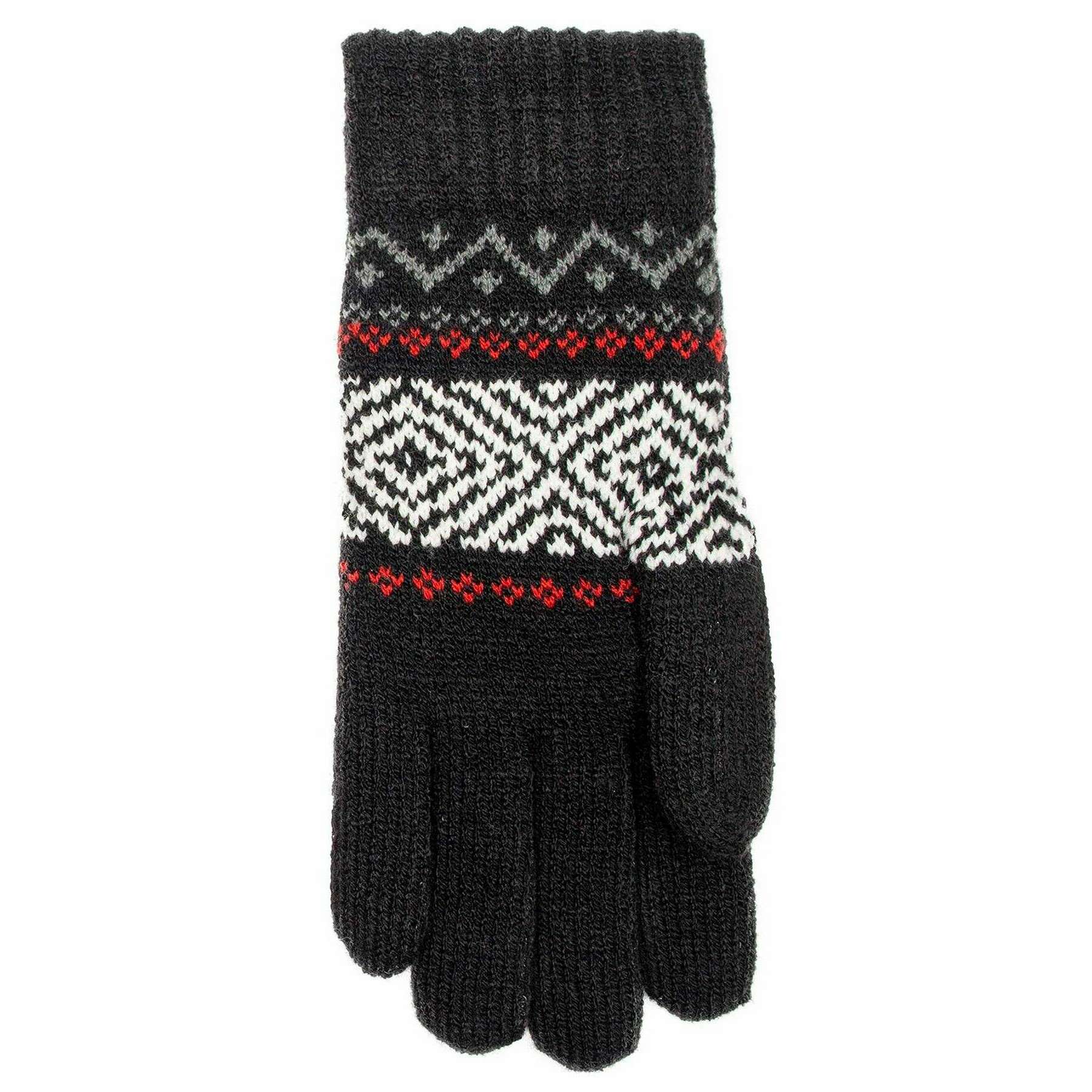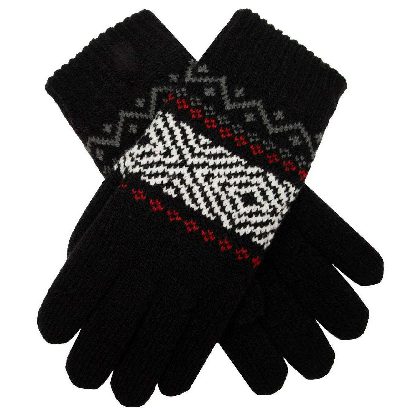 These women's jacquard geometric knitted gloves have been made from 80% acrylic and 20% nylon, featured in a black colour and are from the brand Dents. Also the black gloves are designed in a plain pattern, It is recommended to hand wash only to keep these gloves in good condition. All the gloves come complete with dents tags. The Dents Jacquard Geometric Knitted Gloves - Black feature an eye-catching black, white and red geometric design. These ribbed cuff gloves ensure a secure and comfortable fit, whilst doing everyday activities. Perfect for everyday wear in the colder months.