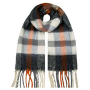Dents Plaid Check Blanket Scarf - Charcoal Grey/Chocolate Brown