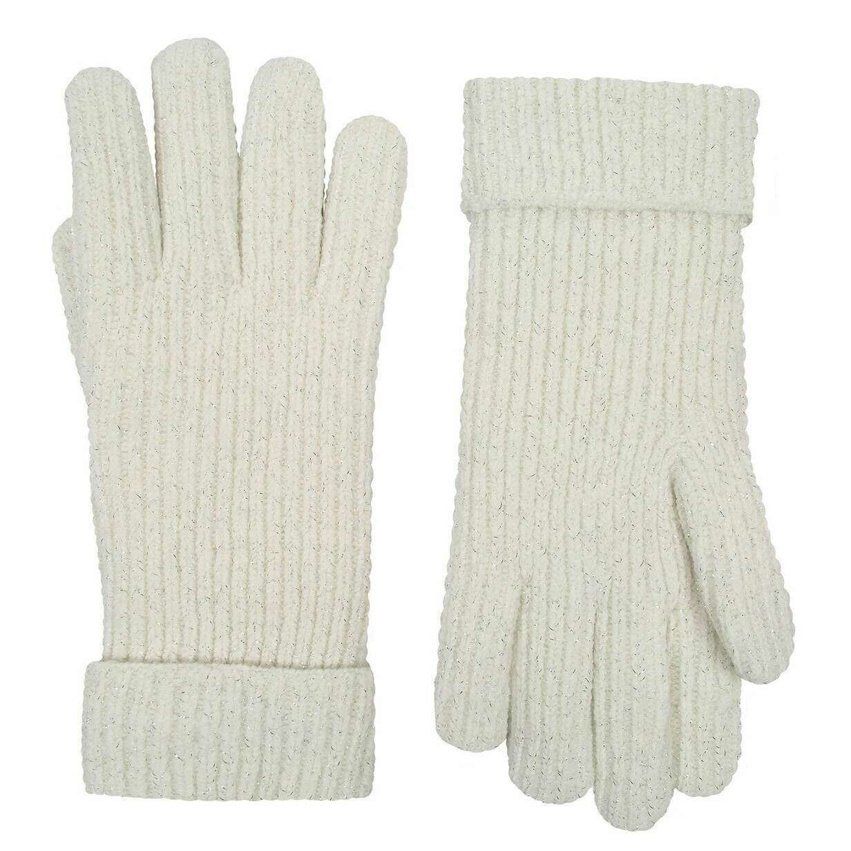 Brought to you by the brand Dents, these winter white women's ribbed knit metallic yarn gloves are made from 80% acrylic and 20% nylon. Also the winter white gloves are designed in a plain pattern, It is recommended to hand wash only to keep these gloves in good condition. All the gloves come complete with dents tags. The Dents Ribbed Knit Metallic Yarn Gloves - Winter White are a cosy and classic pair of white gloves for everyday wear, especially for the colder seasons. Lined with a soft sponge yarn that insulates warmth and ensures a pleasant and homely experience. These gloves give a subtle sparkly to your everyday looks.