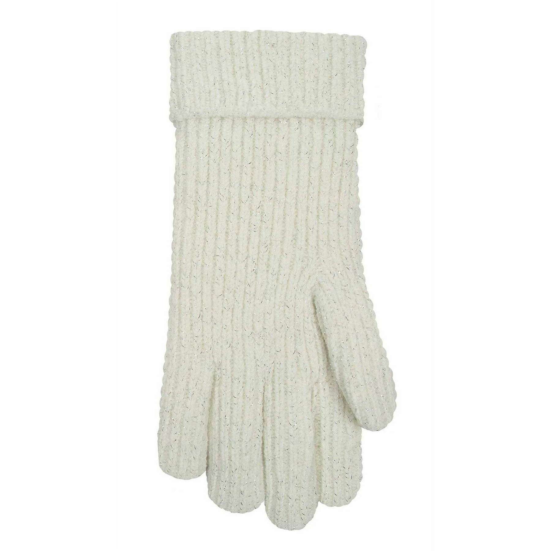 Dents Ribbed Knit Metallic Yarn Gloves - Winter White