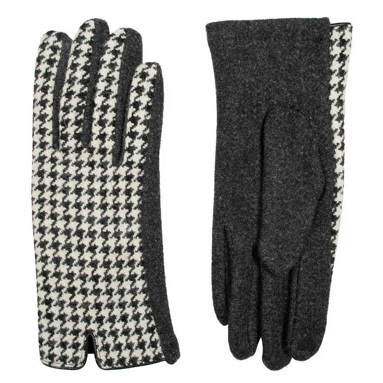 These touchscreen dogtooth design gloves for women are fashioned by the brand Dents in a black colour and are made from 90% polyester and 10% spandex. Also the black gloves are designed in a houndstooth pattern, It is recommended to hand wash only to keep these gloves in good condition. All the gloves come complete with dents tags. The Dents Touchscreen Dogtooth Design Gloves - Black are an iconic dogtooth glove to have in your wardrobe this winter. Suitable for any occasion and activity due to the heart-shaped touchpads on the index finger and thumb, which allow you to use any device without having to remove your gloves. These detailed and high-quality black gloves are perfect for your autumn and winter days.
