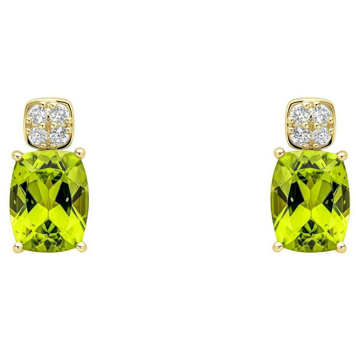 Elements Gold Cushion Cut Cluster Peridot 9ct Gold Earrings - Gold/Green