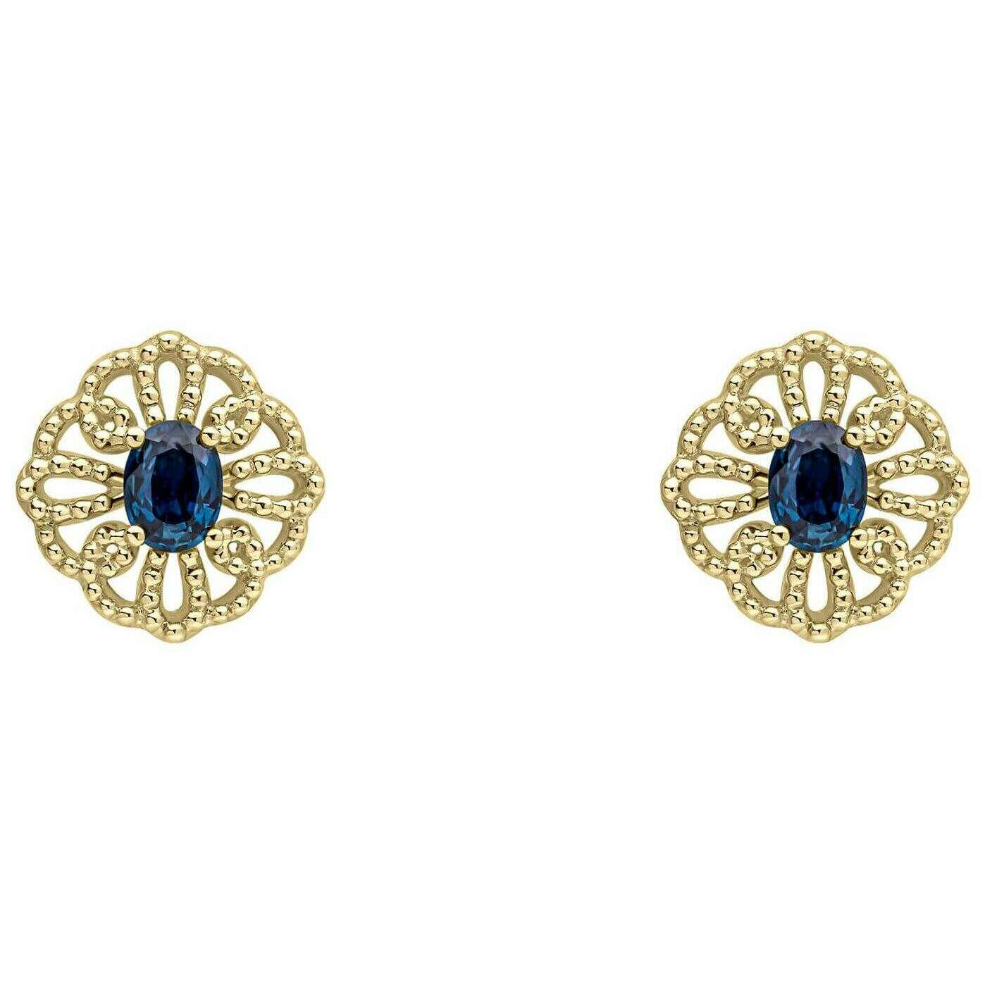 Elements Gold Ornate Sapphire 9ct Gold Earrings - Blue