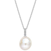 Elements Gold Oversized Baroque Pearl and Topaz 9ct Gold Pendant - Silver/White