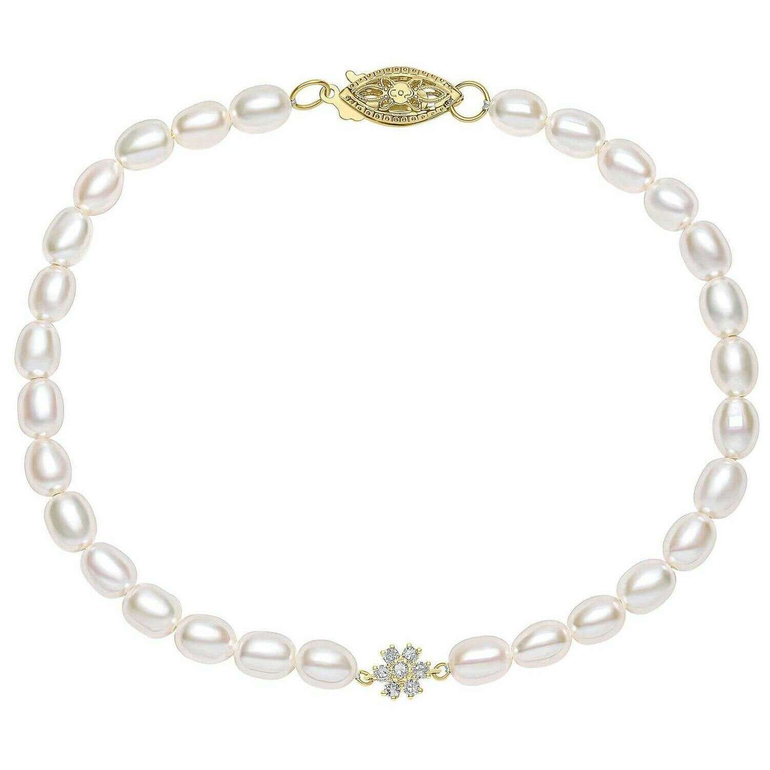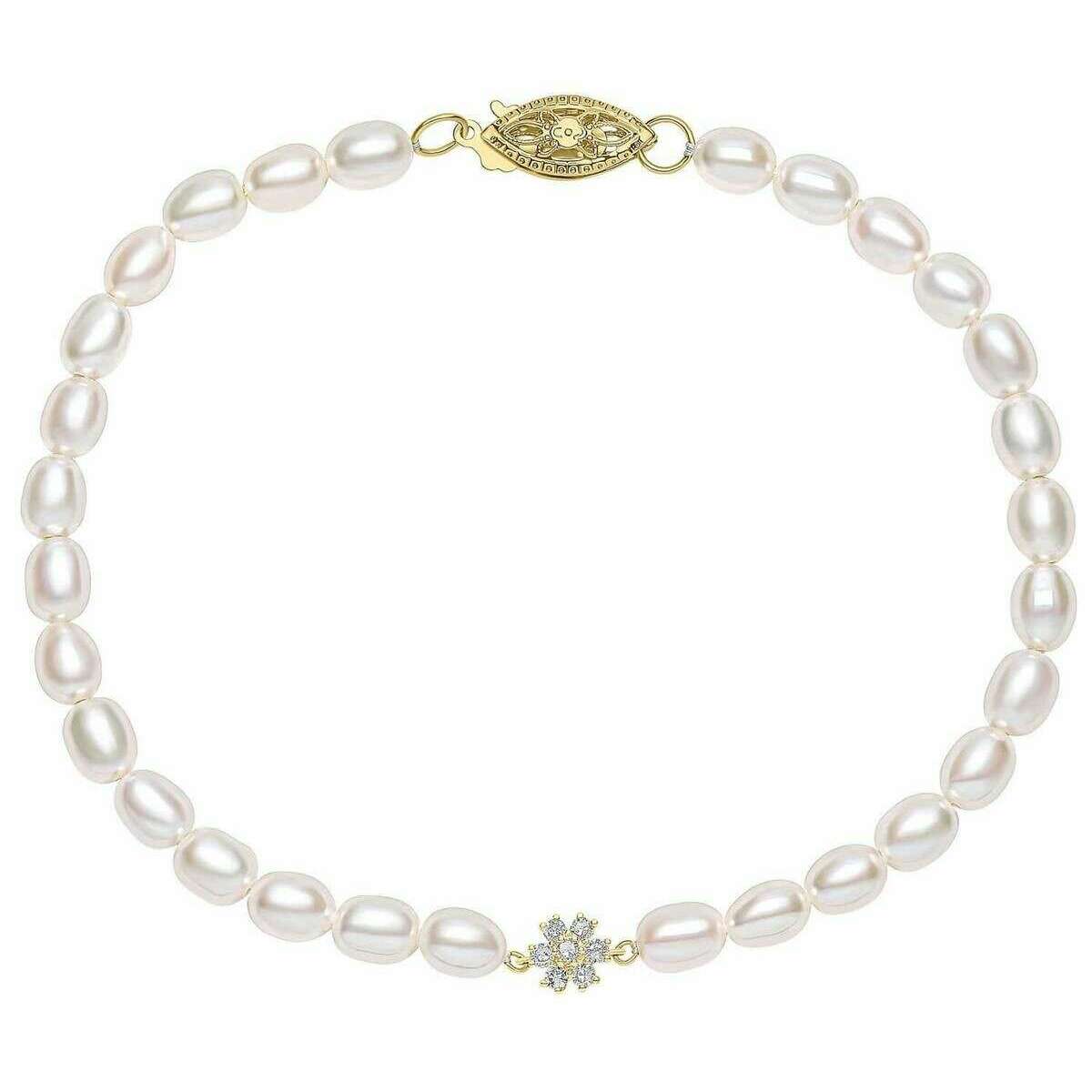 Using white 9ct yellow gold and freshwater pearl, this seed pearl and flower 9ct gold bracelet by Elements Gold is perfect for women and a must have. It measures 19cm(length). All the bracelets come complete in an elements gold gift box. The Elements Gold Seed Pearl and Flower 9ct Gold Bracelet - Gold/White radiates elegance with its style and gorgeous pearls. This bracelet would make the perfect accessory for those special occasions or the ideal gift for someone special. A classy and feminine pick that offers timeless style that can be cherished for years to come. Each freshwater pearl is ethically sourced and great care has been taken to ensure this piece is skin safe.
