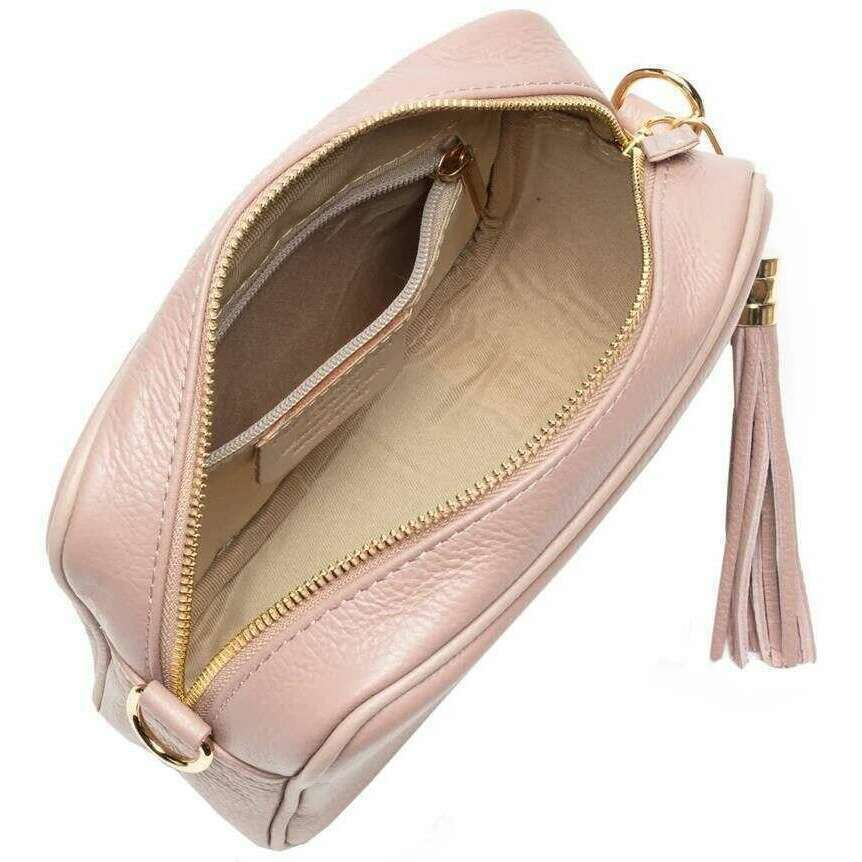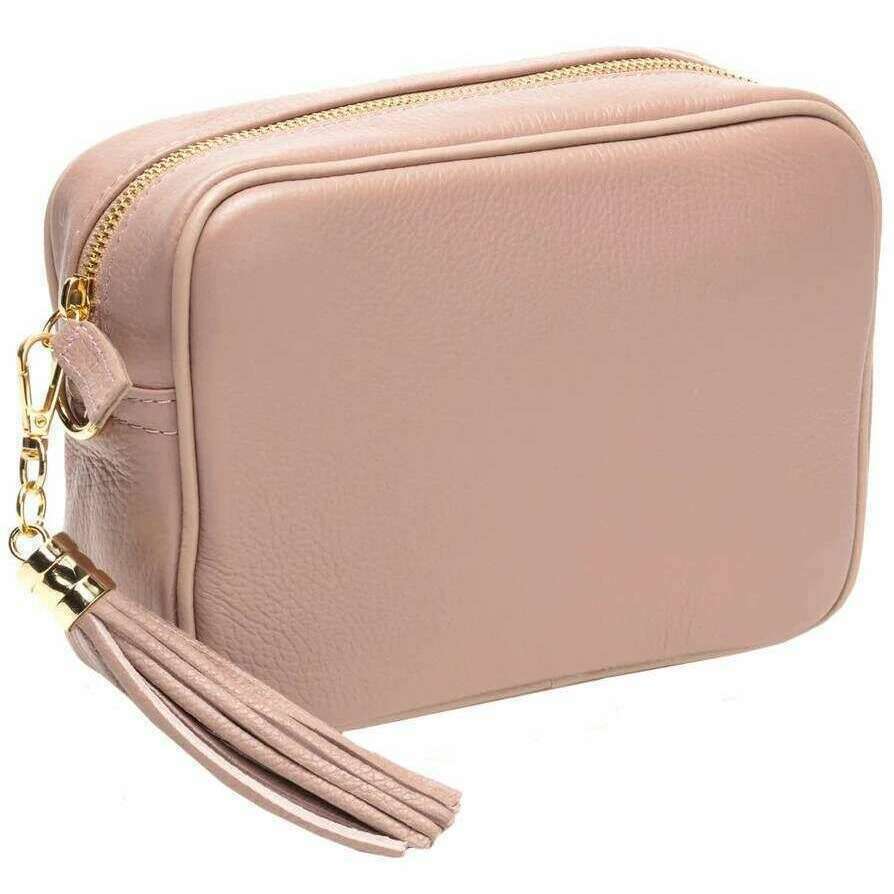 Brought to you by the brand Elie Beaumont, this blush pink women's crossbody bag is made from 100% genuine premium leather. It measures 15cm(height) x 20cm(width) x 7cm(depth). All the bags come complete with elie beaumont packaging. The Elie Beaumont Crossbody Bag - Blush Pink trendy and versatile is a must-have to add to your collection with the gorgeous and useful features. The detachable body strap can be adjusted to your liking depending on the outfit and the look you are going for perfect for all occasions. The large main compartment and interior pocket is great for optimal storage and organisation to hold everything and more that you need. The double layer reinforced base and double stitched side seams ensure this bag is durable and long-lasting. Crafted from premium grained genuine leather is complete with gold hardware and a matching detachable tassel for a girly touch.