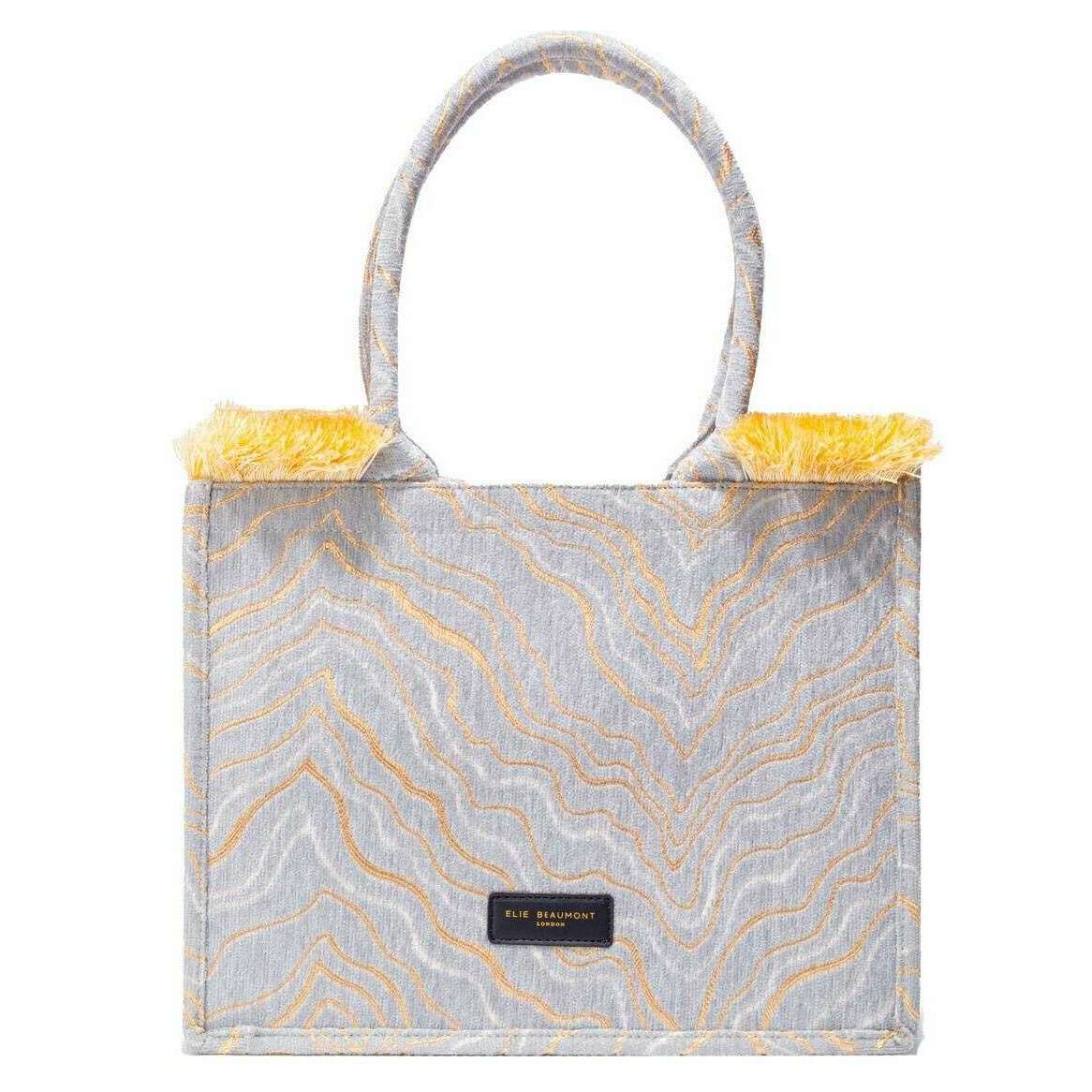 Elie Beaumont Fabric Midi Tote Bag - Velvet Light Grey/Gold