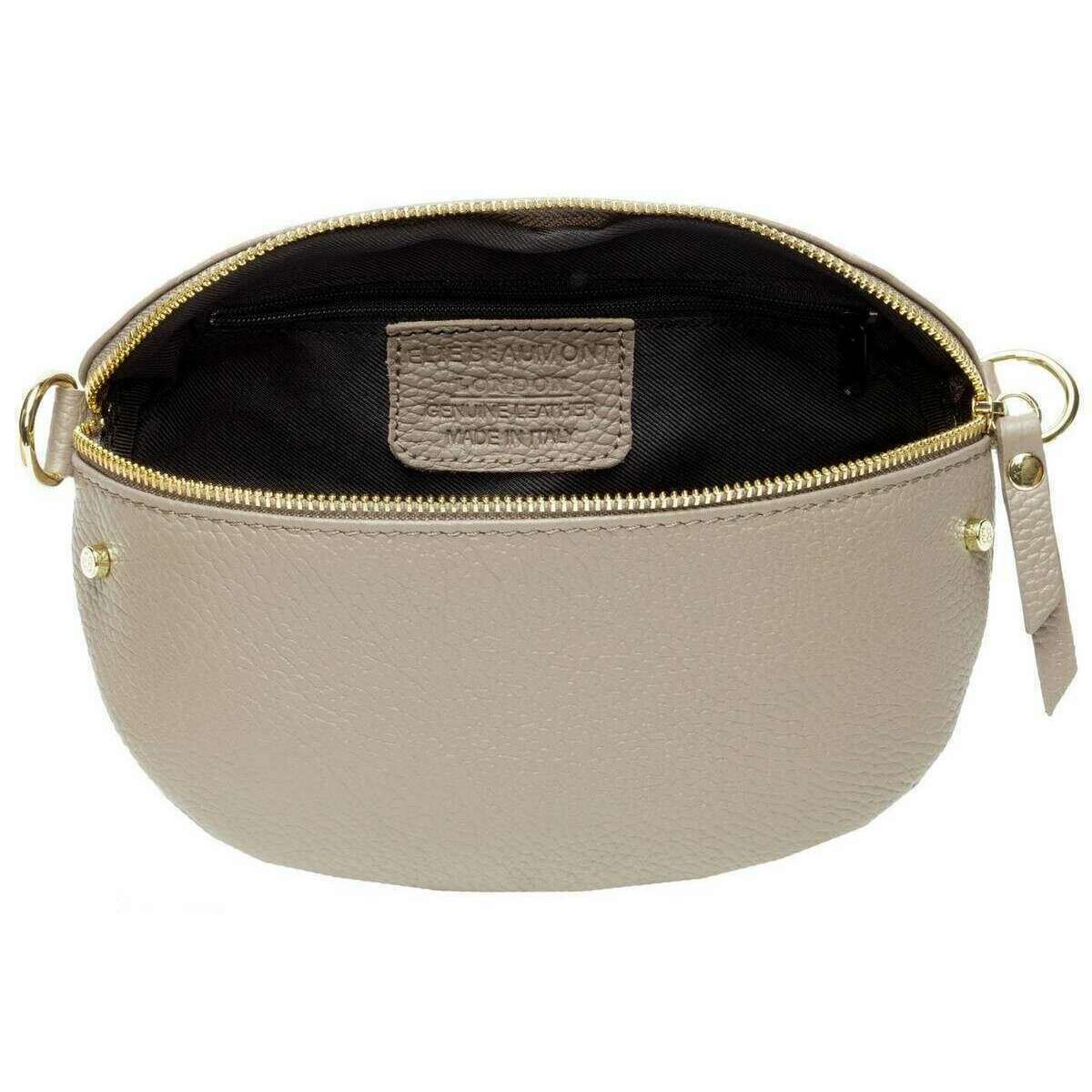 Brought to you by the brand Elie Beaumont, this mink grey women's sling bag is made from 100% genuine premium leather. It measures 10cm(height) x 25cm(width) x 5.5cm(depth). All the bags come complete with elie beaumont packaging. The Elie Beaumont Sling Bag - Mink Grey perfect for a sophisticated everyday wear with its versatile styling options with the adjustable strap. Featuring internal pockets for storage and organisation and a large main compartment to fit your essentials. Crafted from genuine premium leather gives a sleek and luxurious appeal whilst being durable and long lasting. Complete with gold hardware for sophistication.