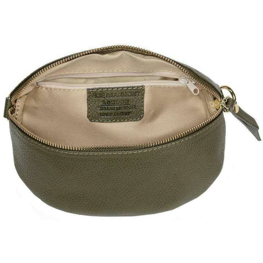 Manufactured from 100% genuine premium leather is this olive green women's sling bag by the designer Elie Beaumont. It measures 10cm(height) x 25cm(width) x 5.5cm(depth). All the bags come complete with elie beaumont packaging. The Elie Beaumont Sling Bag - Olive Green perfect for a sophisticated everyday wear with its versatile styling options with the adjustable strap. Featuring internal pockets for storage and organisation and a large main compartment to fit your essentials. Crafted from genuine premium leather gives a sleek and luxurious appeal whilst being durable and long lasting. Complete with gold hardware for sophistication.