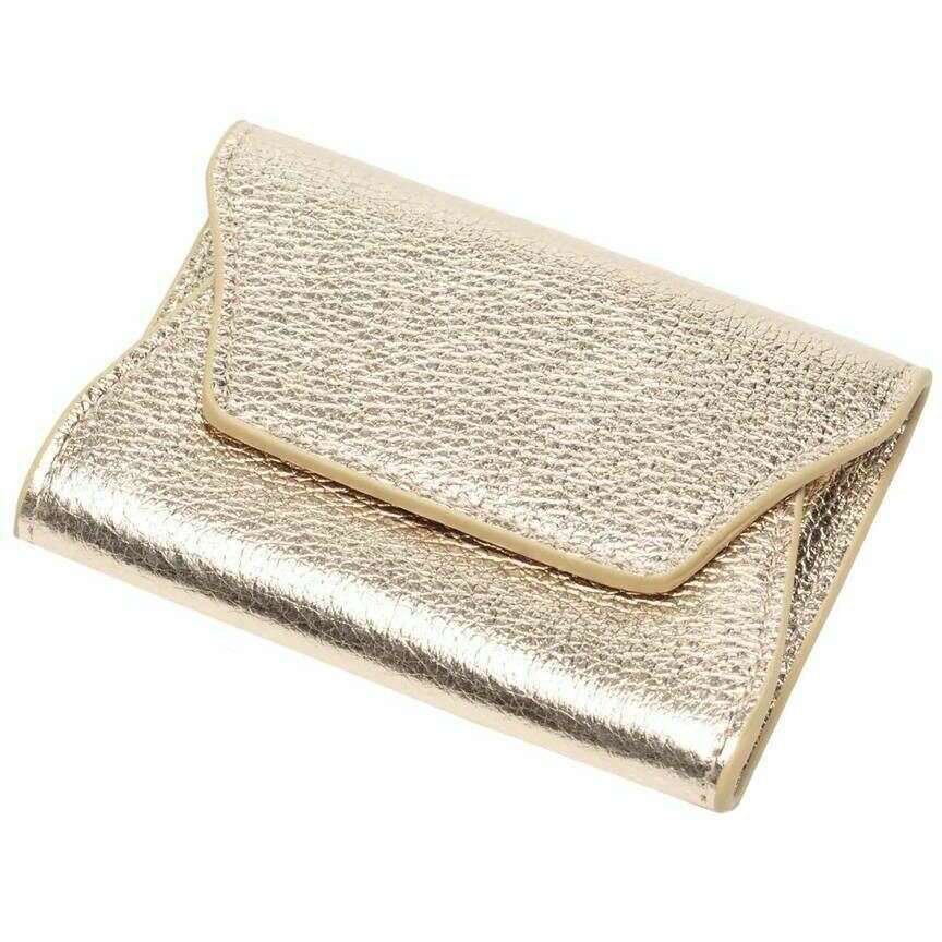 This women's wallet card holder by the brand Elie Beaumont is made from 100% genuine premium leather and is showcased in gold. It measures 9cm(height) x 12.5cm(width) x 1.5cm(depth). All the purses come complete with elie beaumont packaging. The Elie Beaumont Wallet Card Holder - Gold chic and girly is a must-have to add to your bag to keep your cards and cash safe and in one place whilst making you look glamourous. The envelope design with a pop closure gives a unique and satisfying appeal whilst being able to hold up to 3 cards and room for cash, coins, further cards or other small belongings. Crafted from premium grained leather and beige fabric lining.