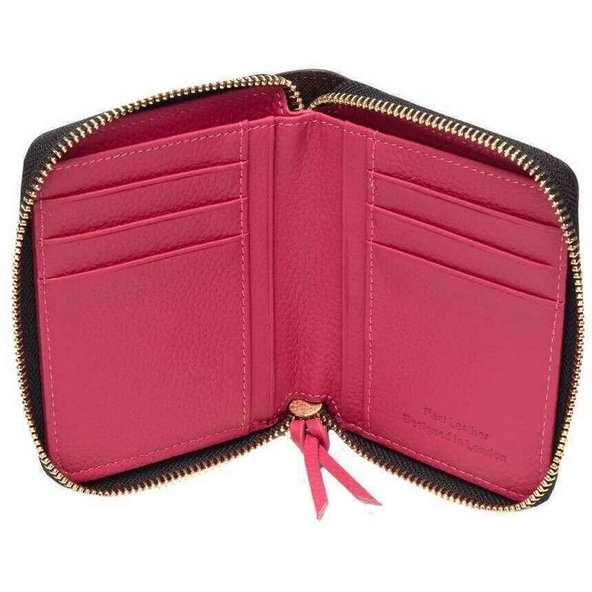 This women's zipper purse by the brand Elie Beaumont is made from 100% genuine premium leather and is showcased in black. It measures 10cm(height) x 12.5cm(width) x 2.5cm(depth). All the purses come complete with elie beaumont packaging. The Elie Beaumont Zipper Purse - Black/Berry Pink will become your everyday companion, complimenting your bag and your style when shopping. This small and compact purse features great storage with room for 6 cards, cash, receipts and coins with the external back zippered pocket. The zippered closures ensure this purse is secure without the fear of losing your valuables. Giving this purse its harmonised look is the matching interior colour with the knot design zip pull and subtle gold hardware throughout. Hand finished with premium grained leather for durability and luxury.