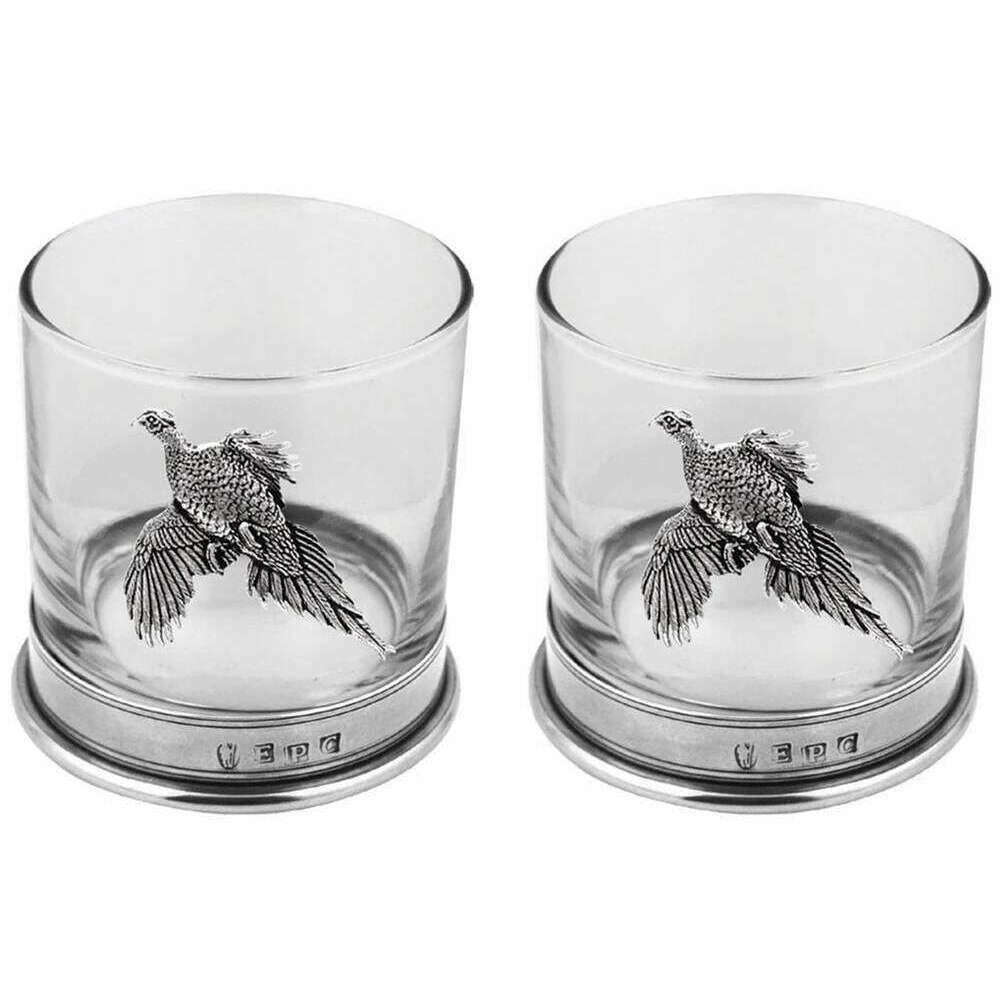 English Pewter Company 11oz Double Pheasant Tumbler Set - Silver/Clear