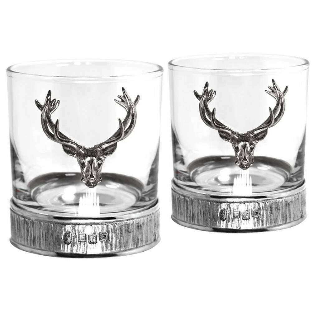English Pewter Company 11oz Majestic Stag Double Tumbler Set - Silver/Clear