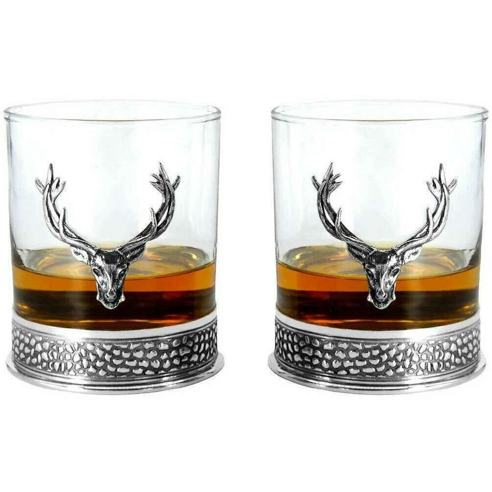 English Pewter Company 11oz Regal Stag Double Tumbler Set - Silver/Clear