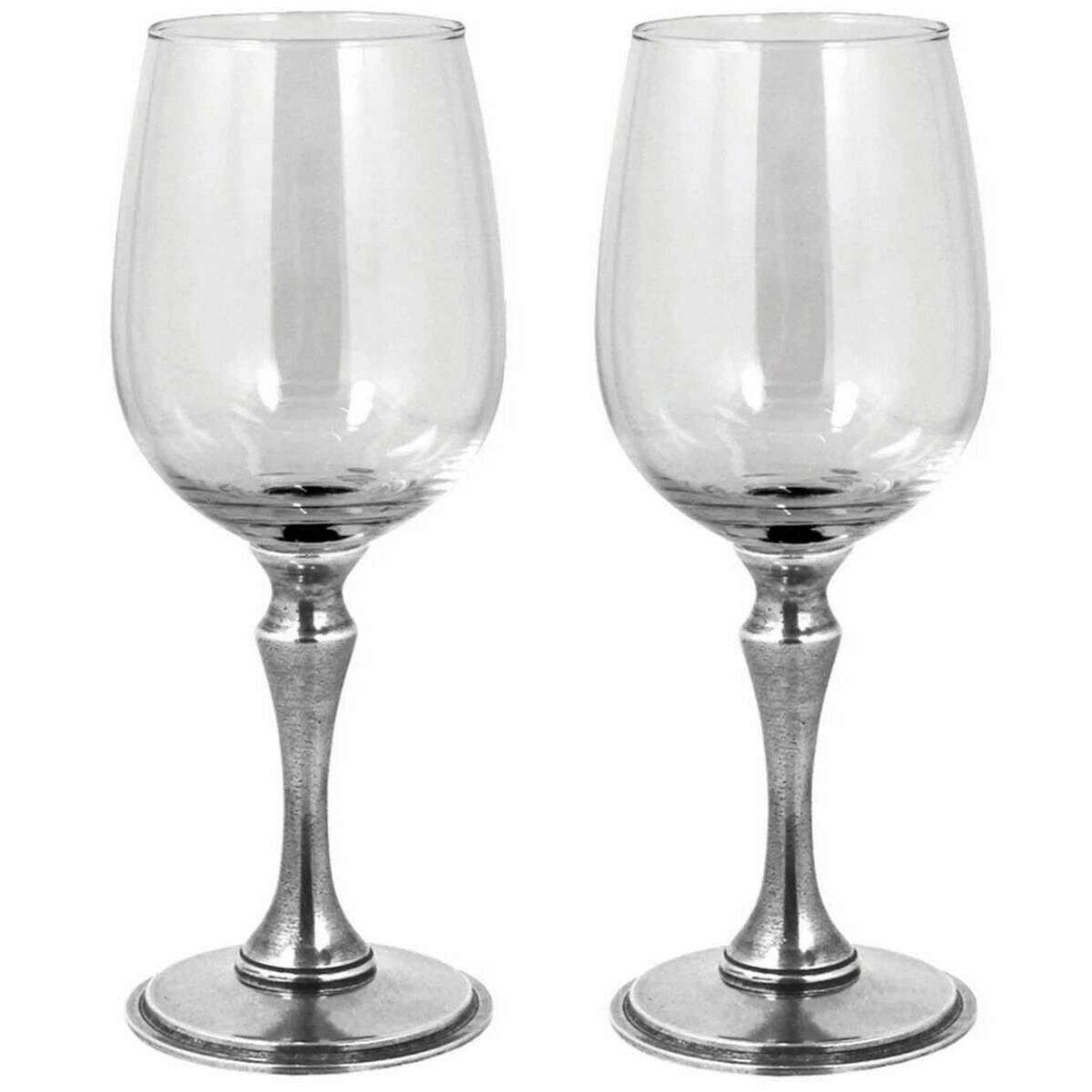 English Pewter Company 350ml Double Vogue Wine Glass Set - Clear/Silver
