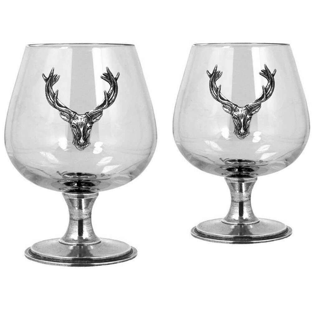 English Pewter Company 410ml Double Stag Brandy Glass Set - Silver/Clear