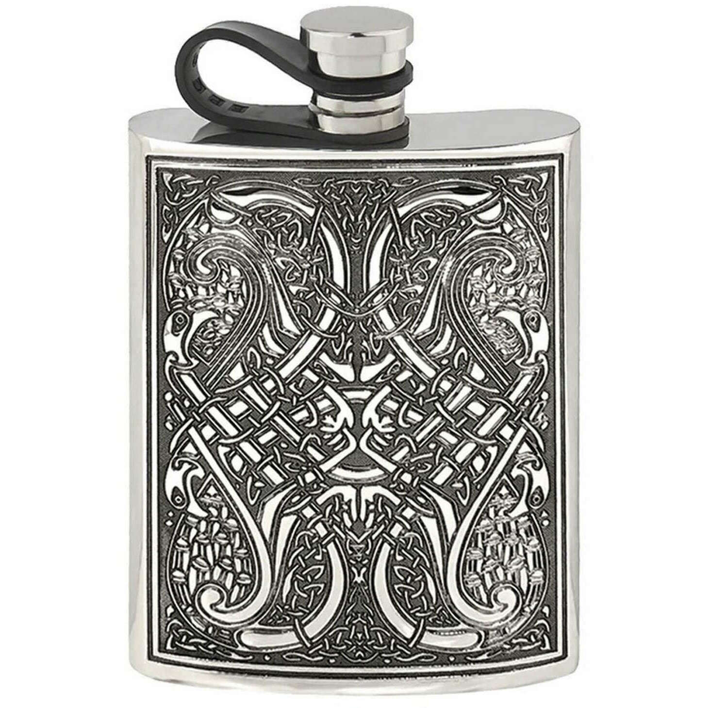 Using silver pewter, this 6oz celtic knot flexi cap flask by English Pewter Company is perfect for men or women and a must have. It measures 12cm(height). English Pewter Company have made this 6oz celtic knot flexi cap flask in Britain. All the hip flasks come complete with english pewter company packaging. The English Pewter Company 6oz Celtic Knot Flexi Cap Flask - Silver will make the perfect companion, storing your favourite beverage in timeless style and impeccable quality. The flexi-cap ensures that your favourite drink is secure inside with its leak-proof seal but also making sure it is easily accessible. Adorned with a classic design, this hip flask would make the perfect gift.