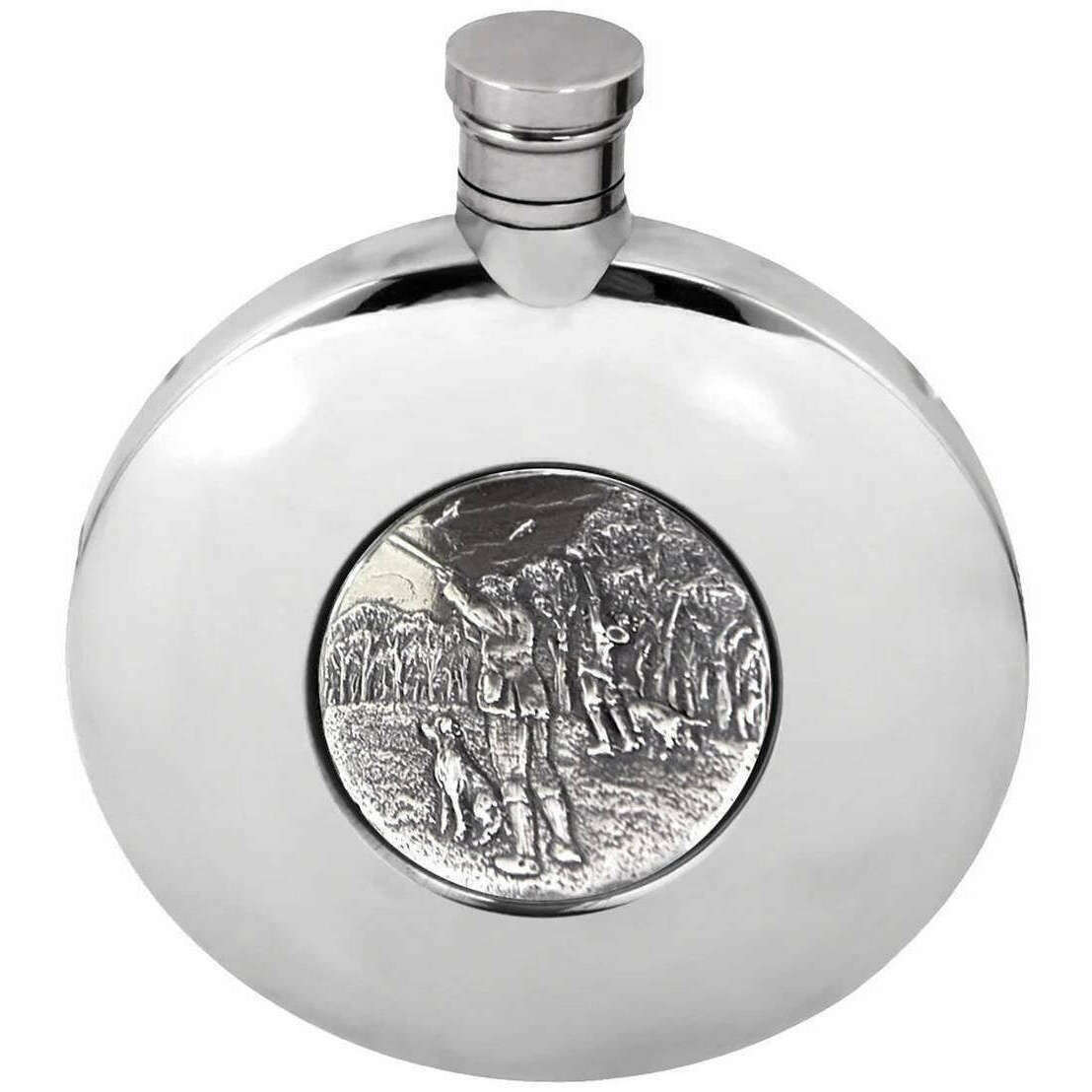 English Pewter Company 6oz Ellipse Shooting Badge Hip Flask - Silver