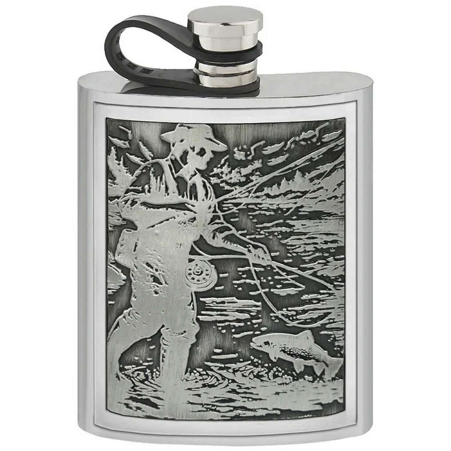 English Pewter Company 6oz Embossed Fishing Hip Flask - Silver